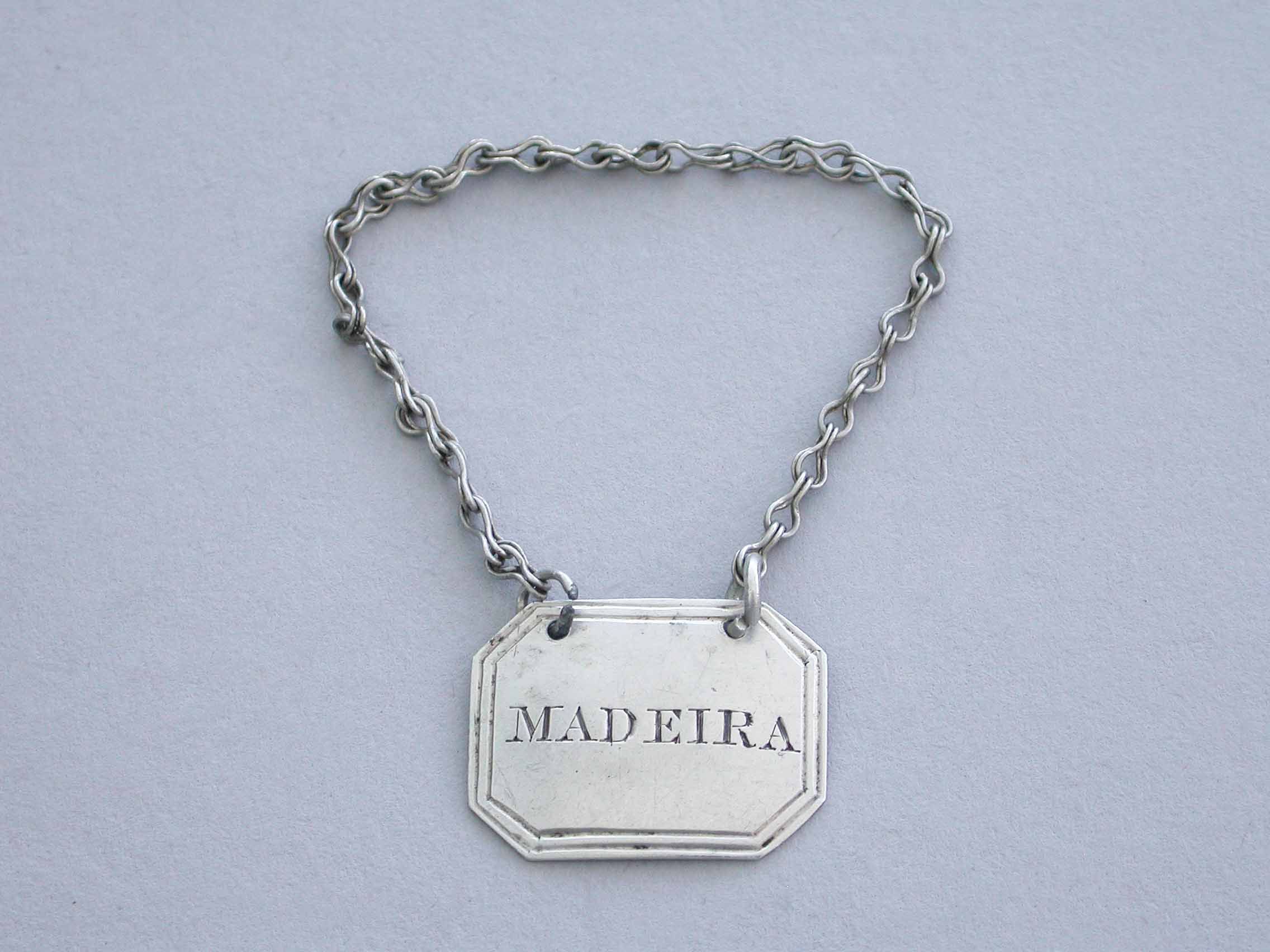 A small George IV silver Wine Label of rectangular form with cut-corners, incised for Madeira.