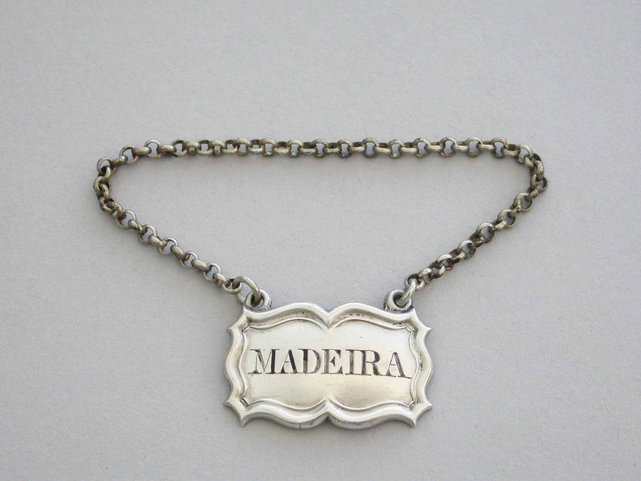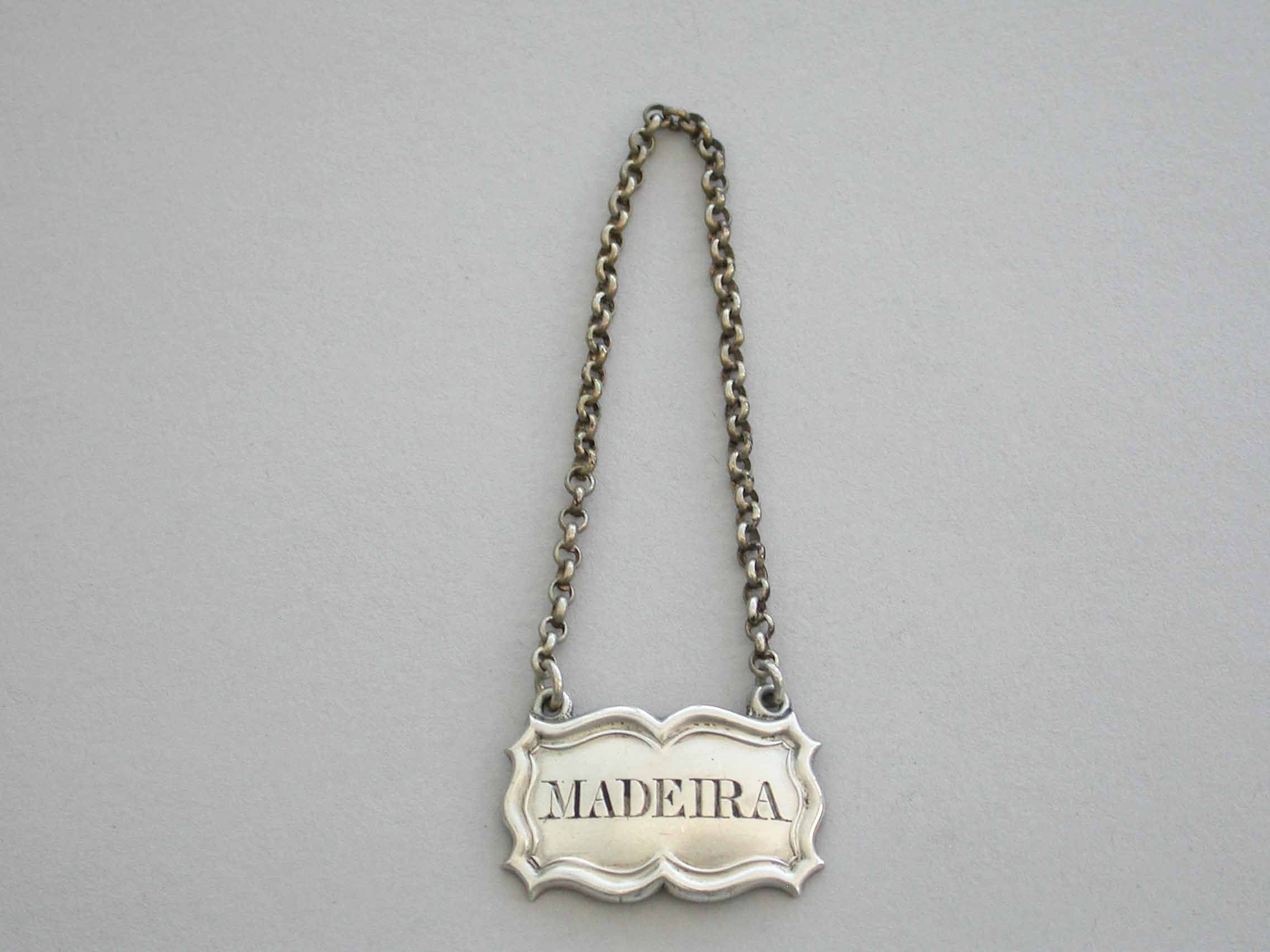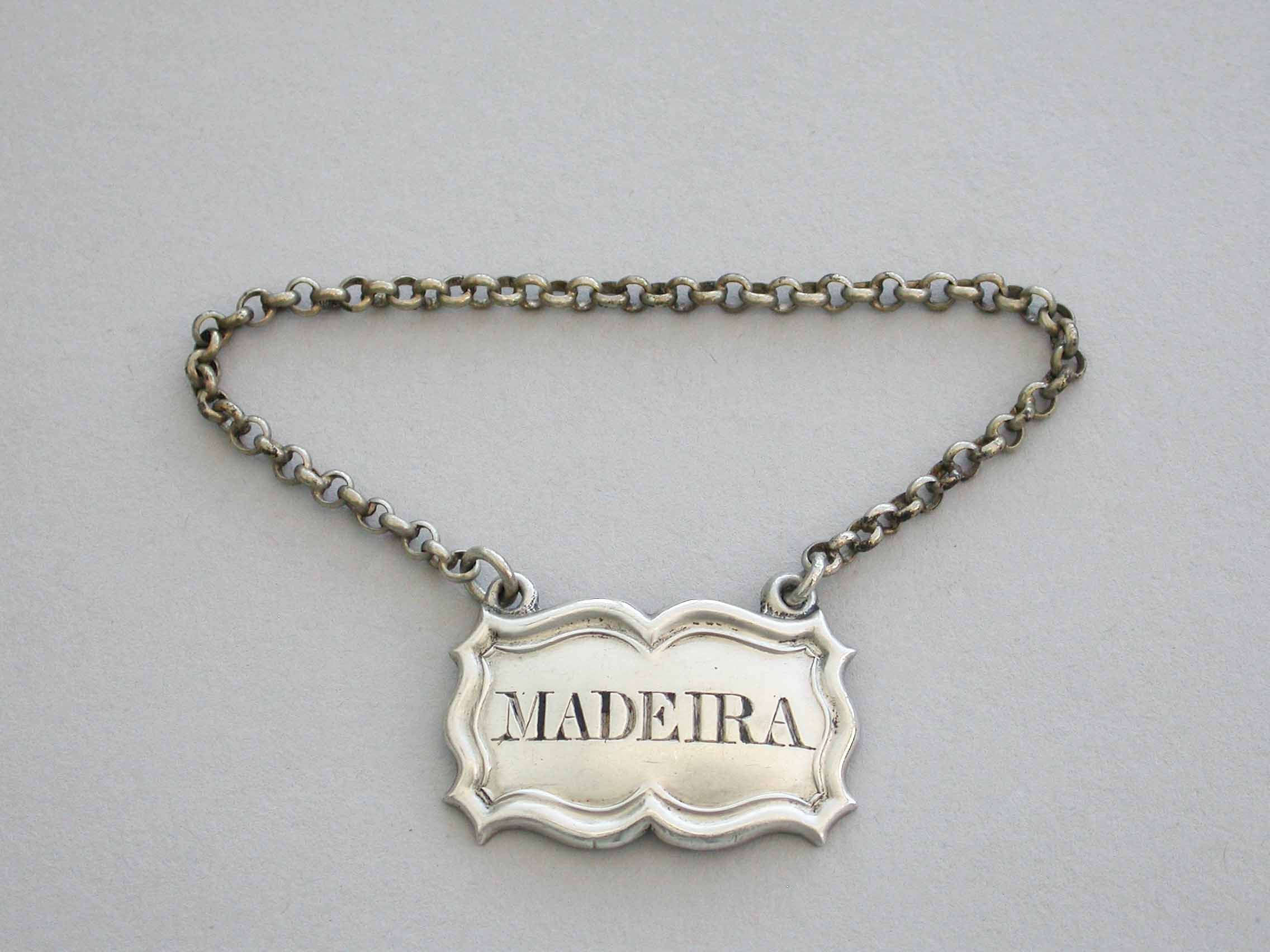 A small Victorian silver Wine Label of shaped rectangular form with raised moulded border, incised for Madeira.