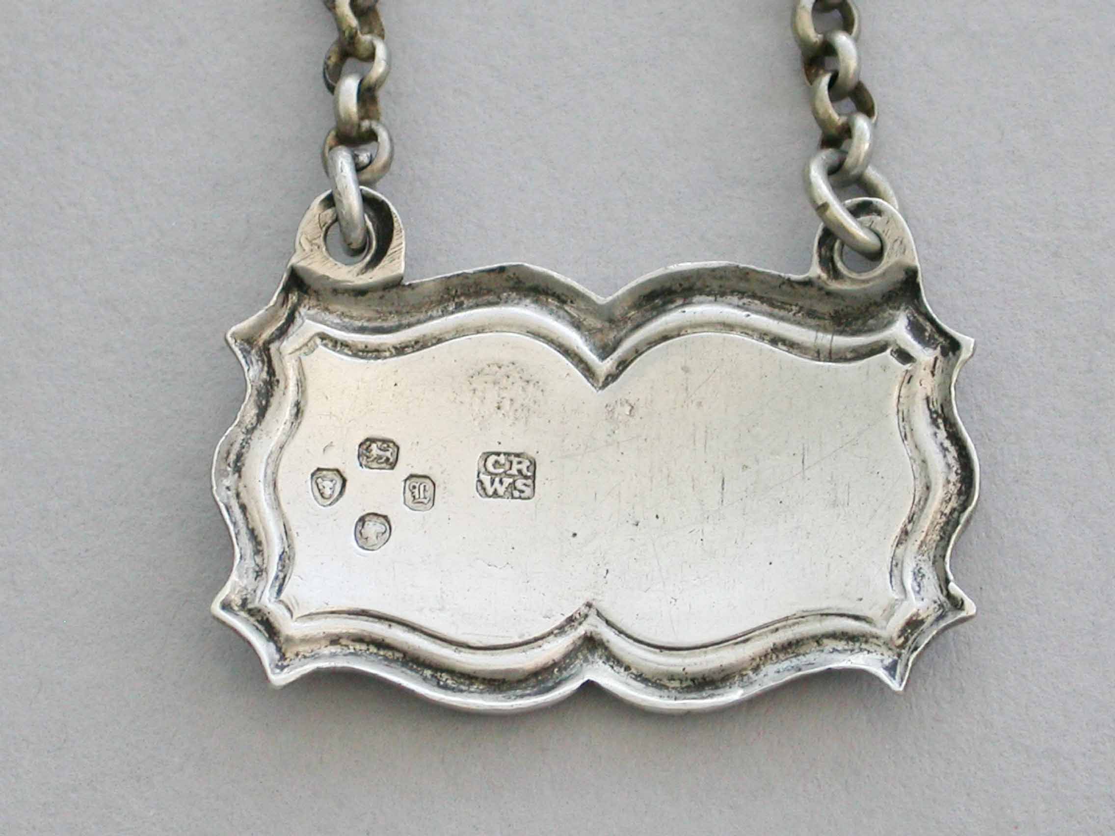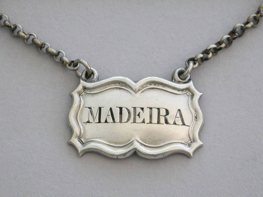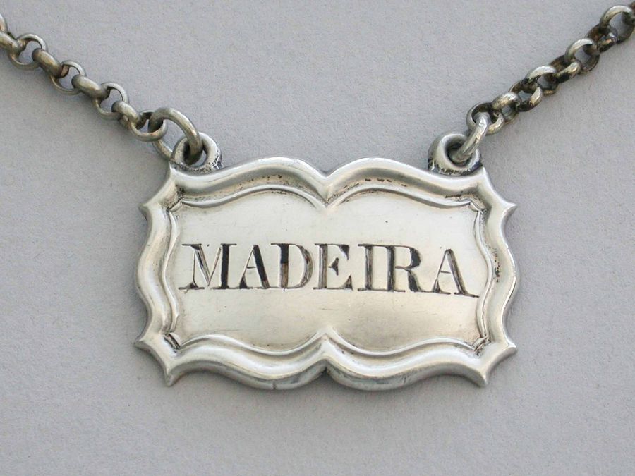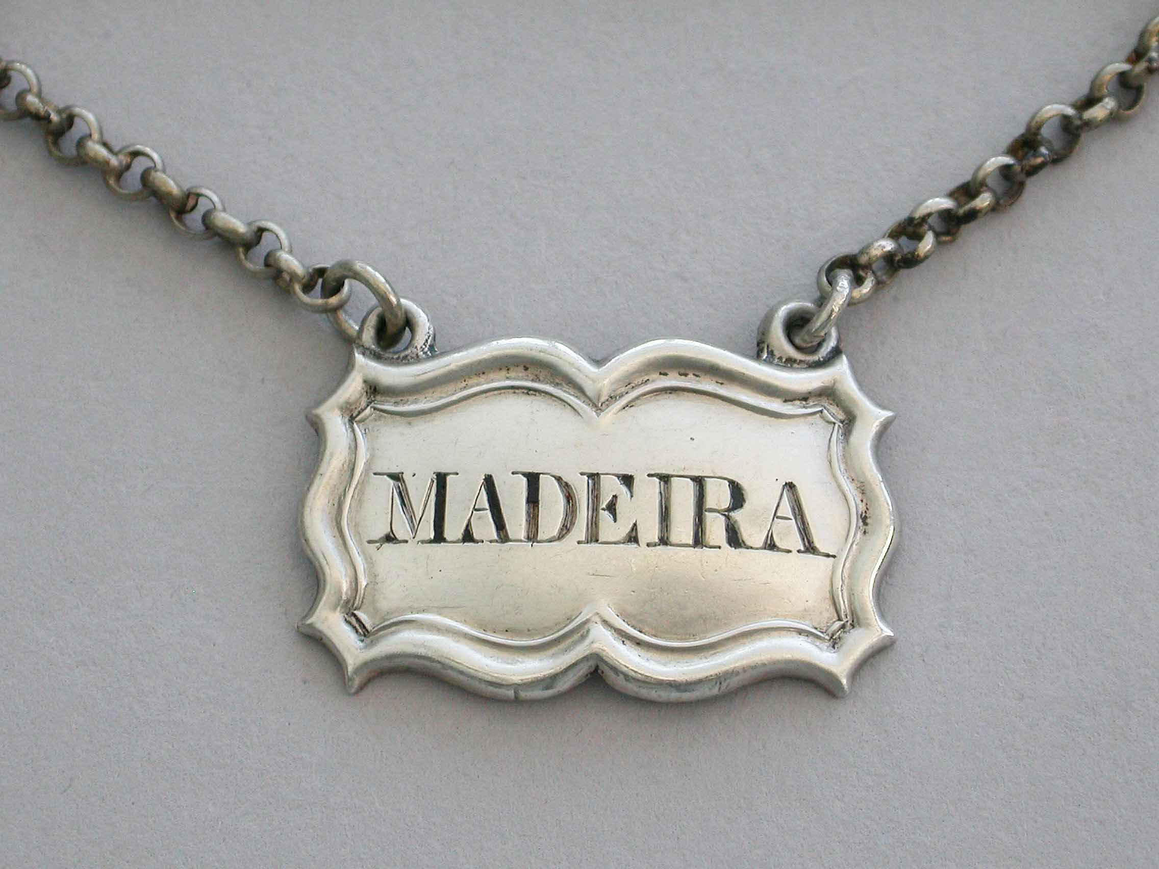 A small Victorian silver Wine Label of shaped rectangular form with raised moulded border, incised for Madeira.