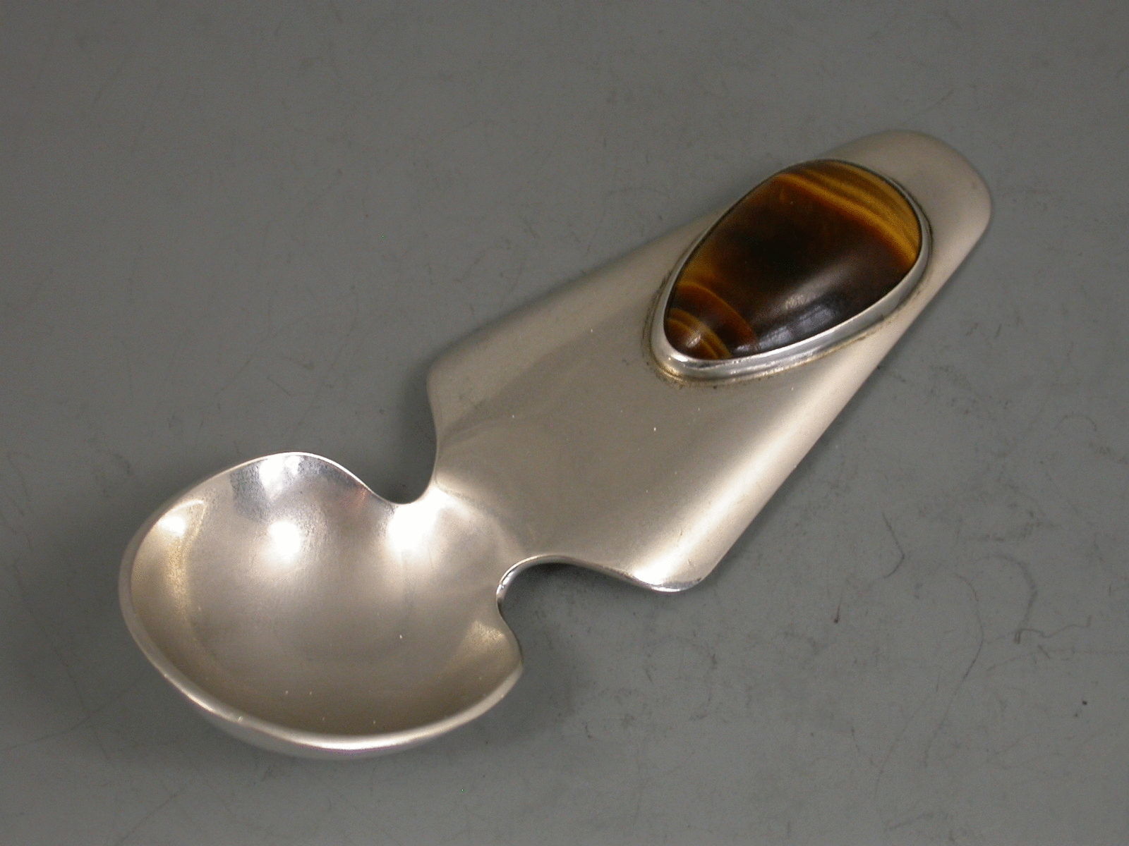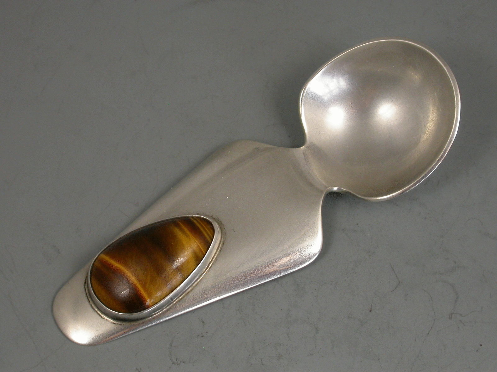 South African Contemporary Silver Tigers Eye Caddy Spoon