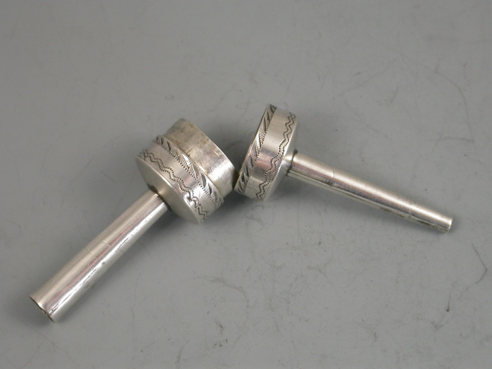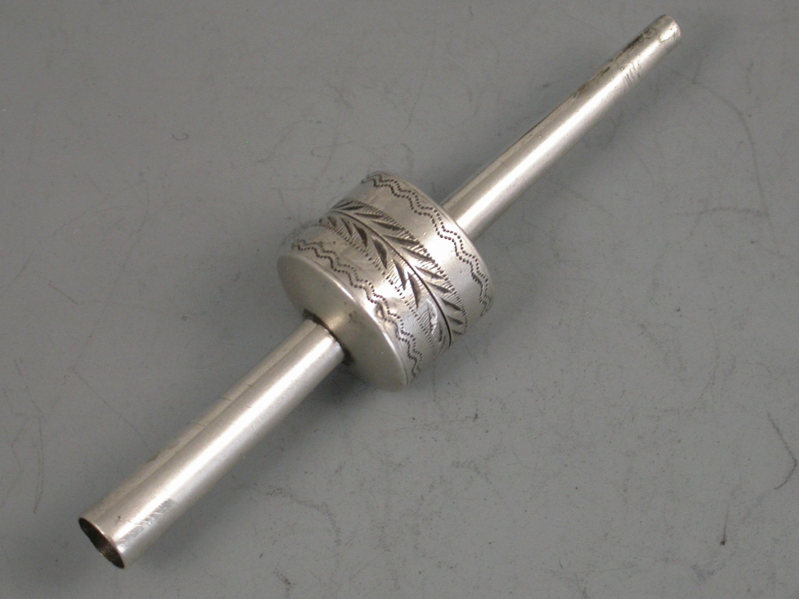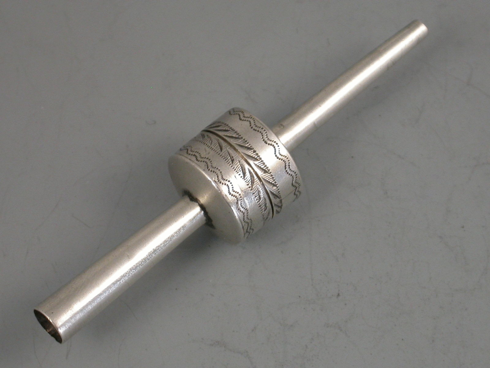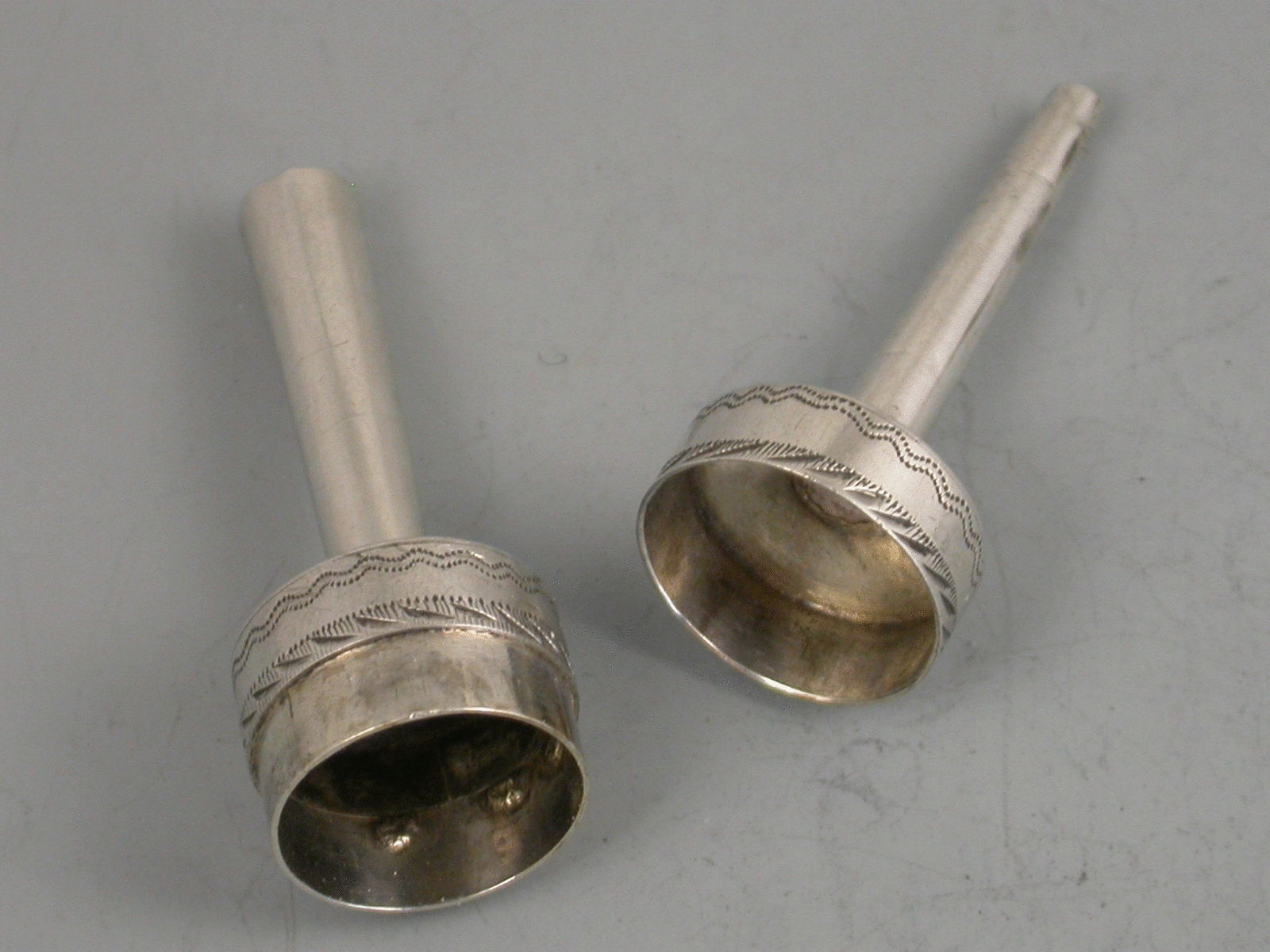 Two George III silver Perfume Funnels conjoined at the centre, with bright-cut engraved herringbone decoration.