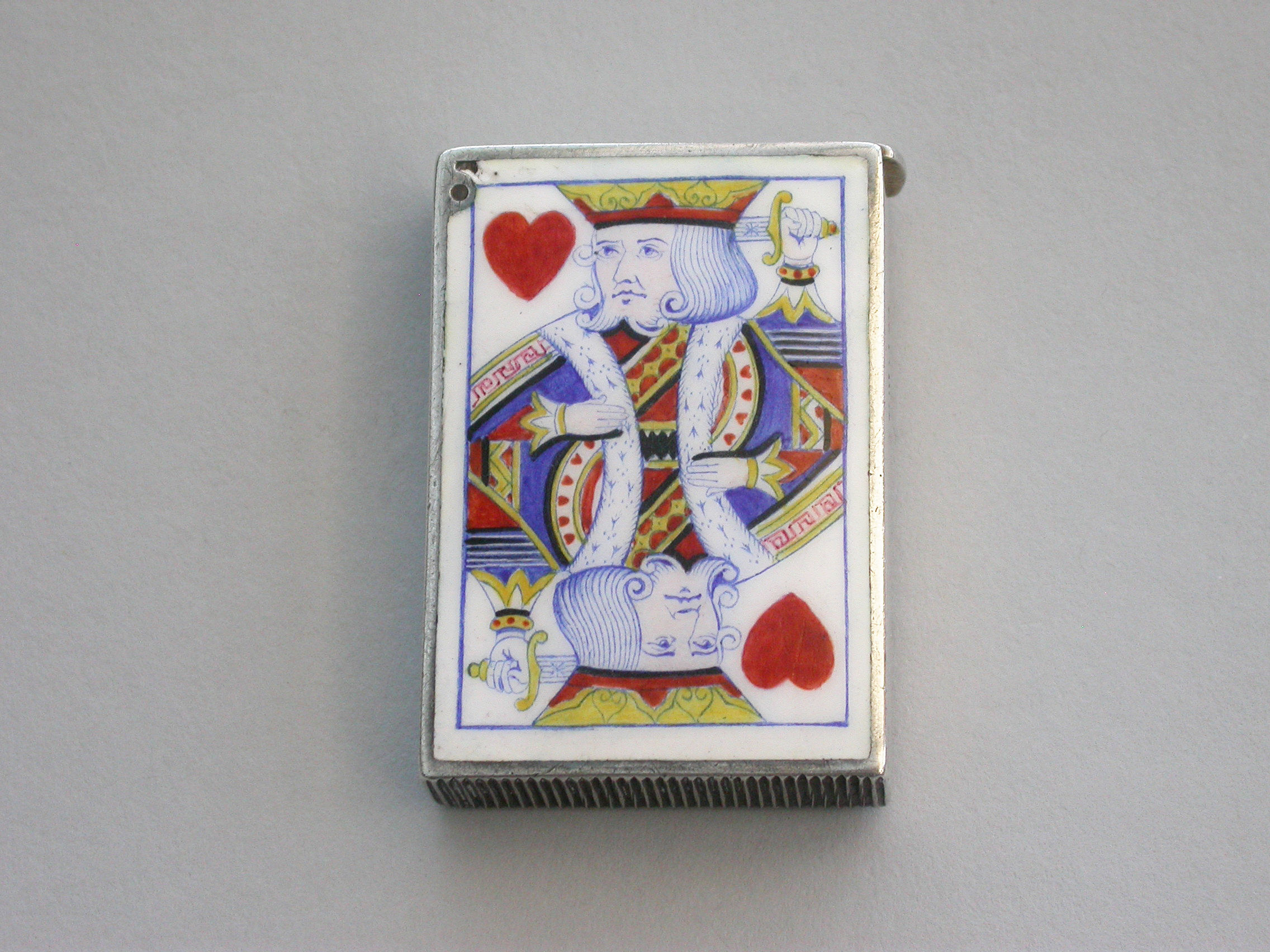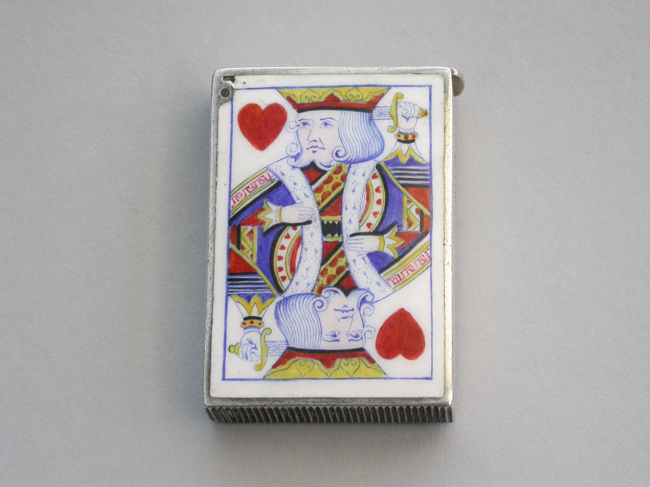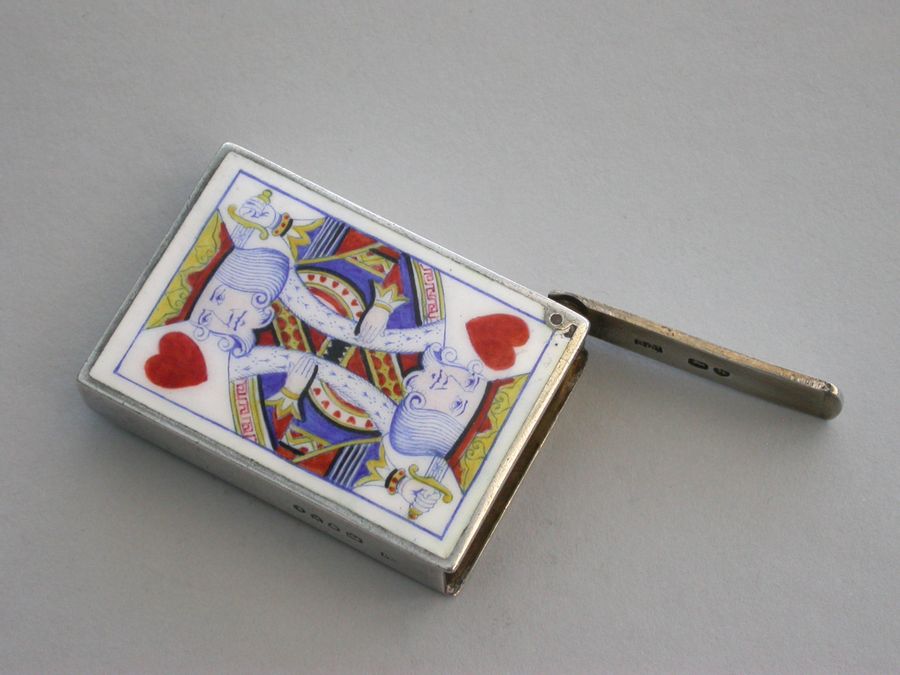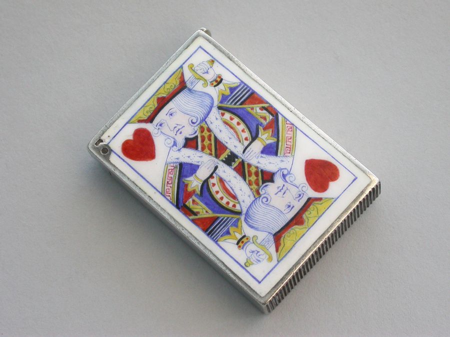 Victoriain Silver & Enamel Playing Cards Vesta Case 'King of Hearts'