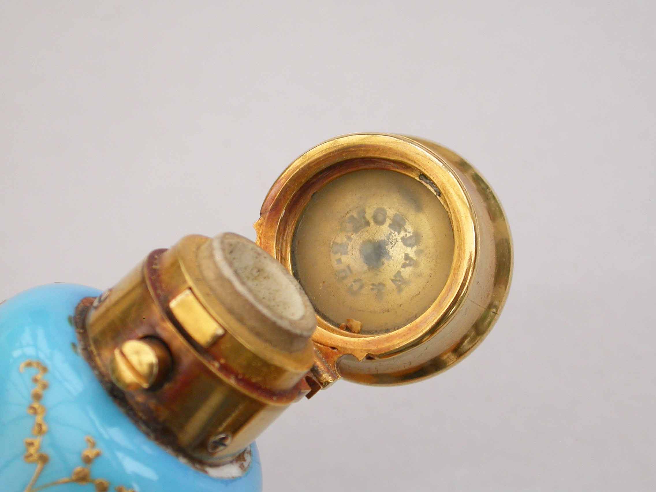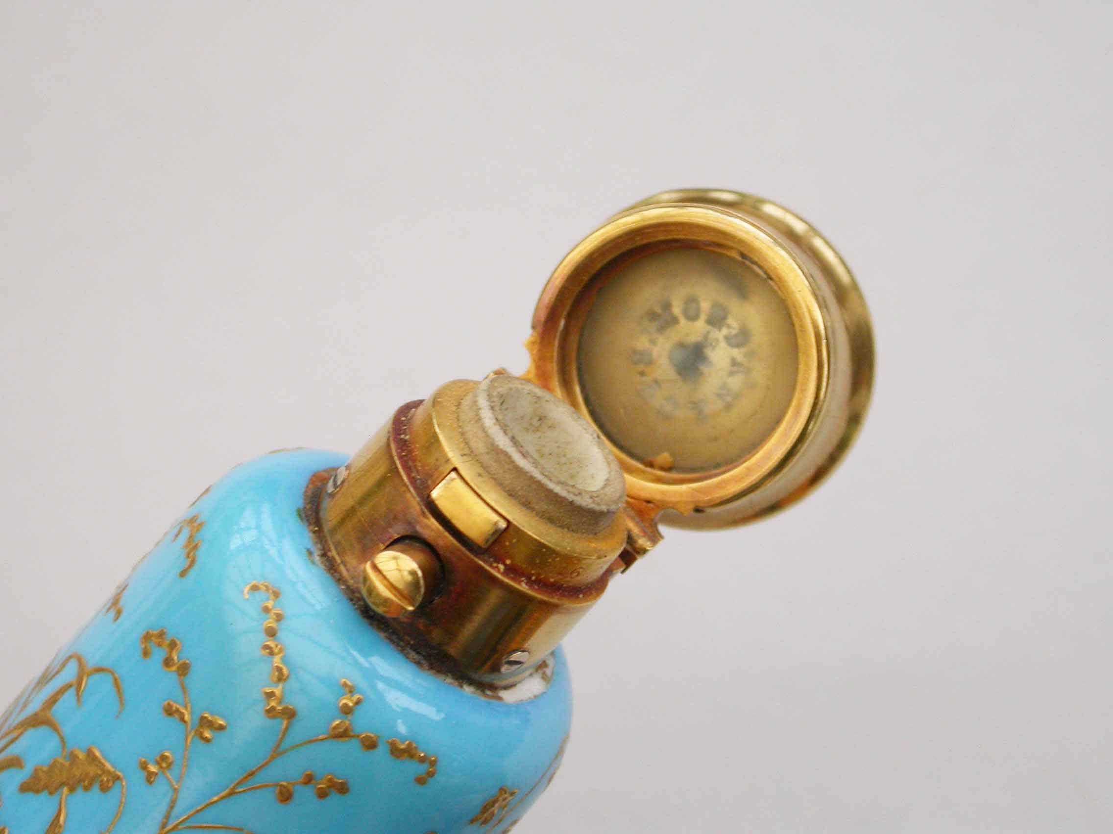 Victorian 16 Carat Gold Mounted Double Ended Turquoise Ground Painted Porcelain Scent & Smelling Salts Bottle