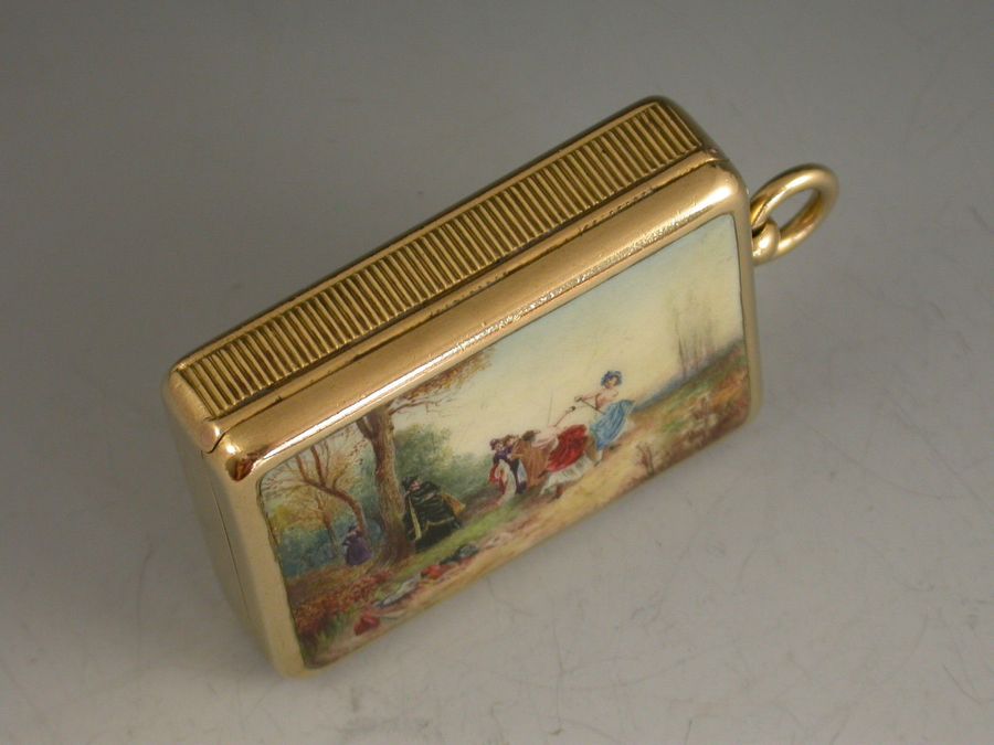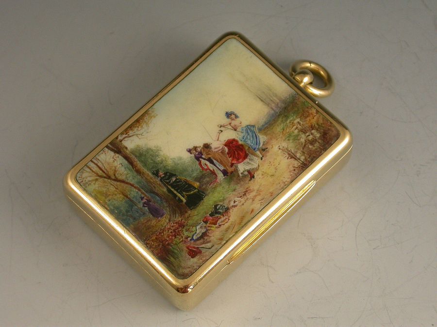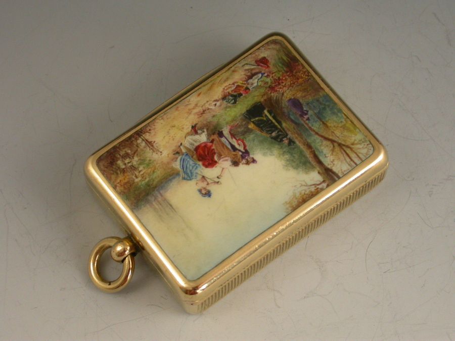 Victorian 18 carat Gold & Enamel Vesta Case ""An Affair of Honor""