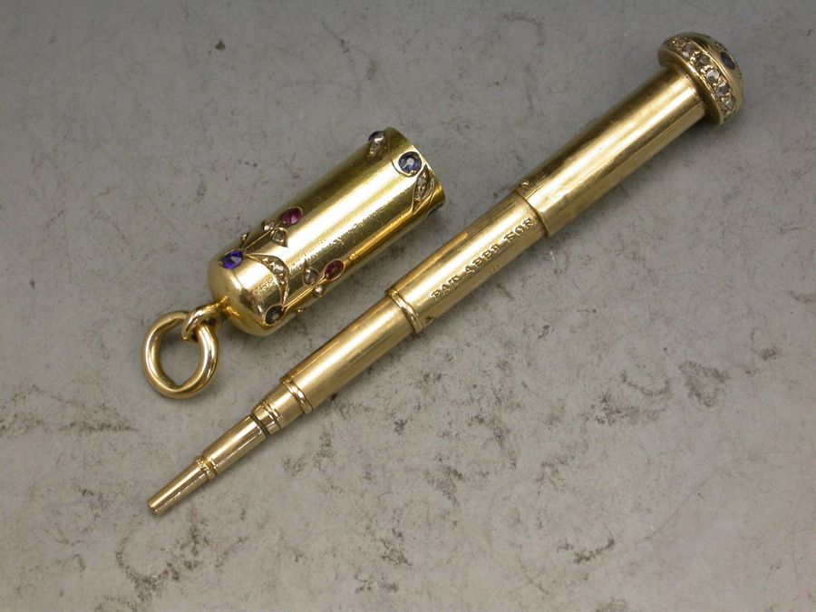 Victorian 18 carat Gold, Diamond, Ruby & Sapphire Set Propelling Pencil