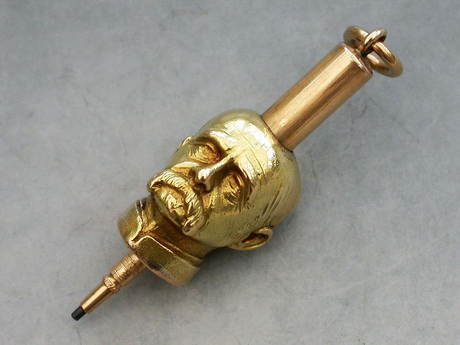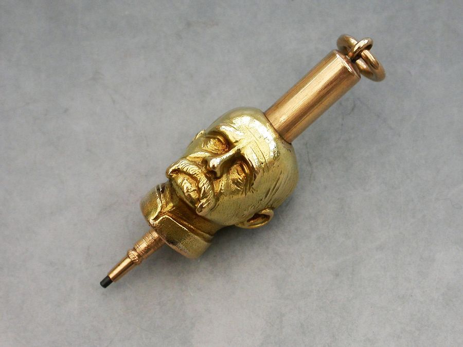 Victorian 18 carat Gold Propelling Pencil Bust of Field Marshal Frederick Sleigh Roberts, 1st Earl Roberts.
