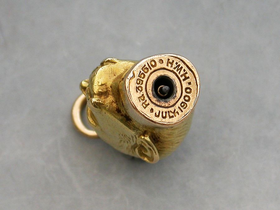 An extremely rare Victorian 18 carat gold novelty telescopic propelling Pencil, formed as a bust of Field Marshal Frederick Sleigh Roberts, 1st Earl Roberts. The base stamped with the maker’s initials: ‘HWH’, for Henry W Houle of Ortner & Houle, St James’s Street, London.