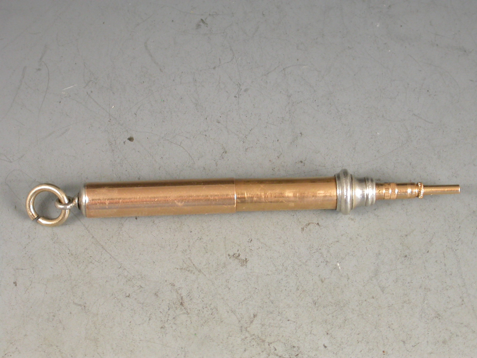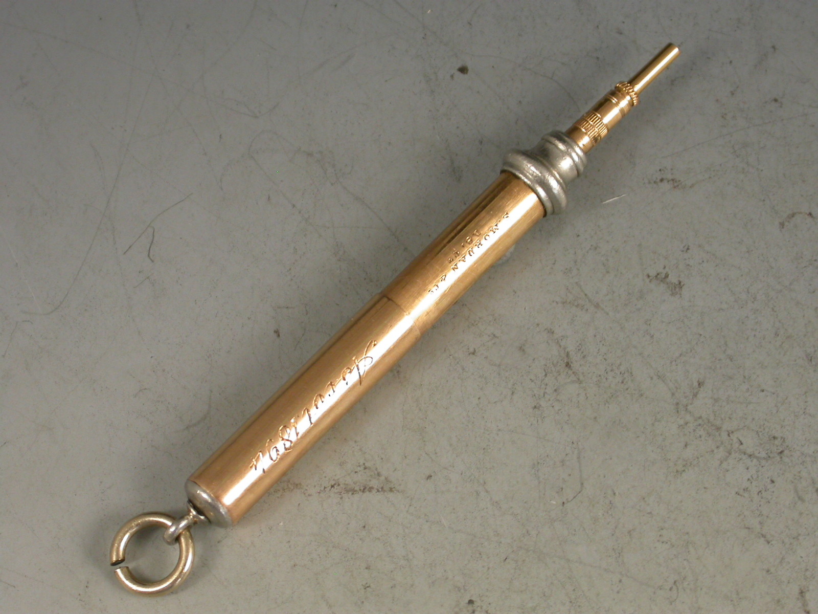 A good late 19th century 18 carat gold Telescopic Magic Pencil with attached suspension ring, the plain cylindrical body inscribed 'Ascot 1894'.