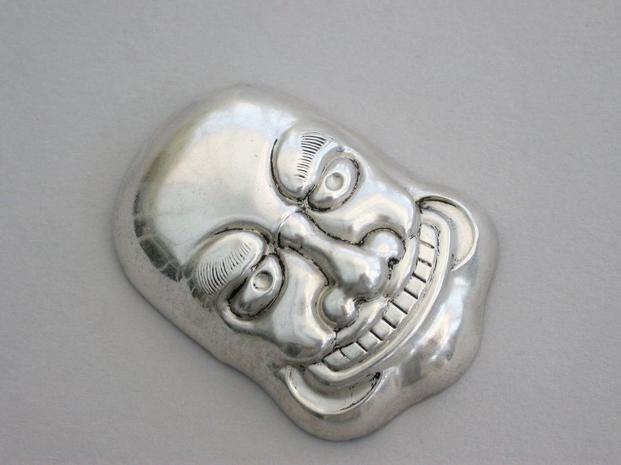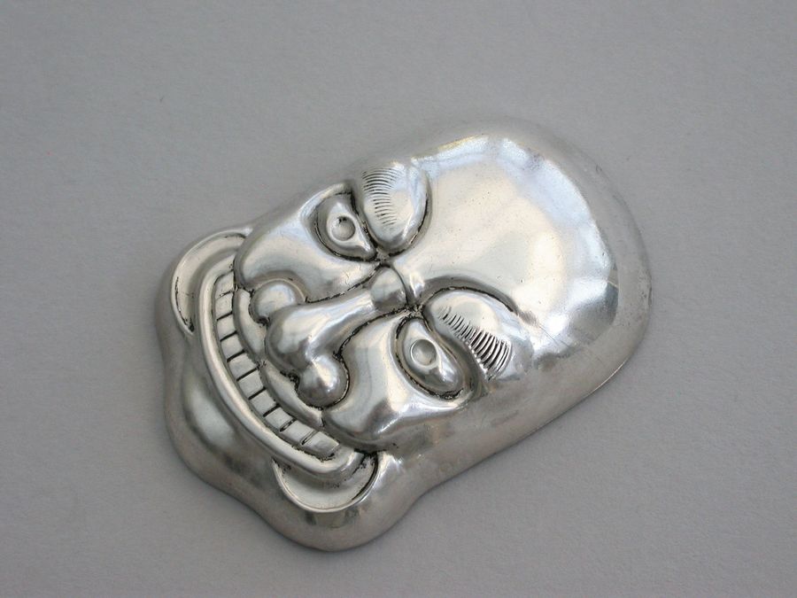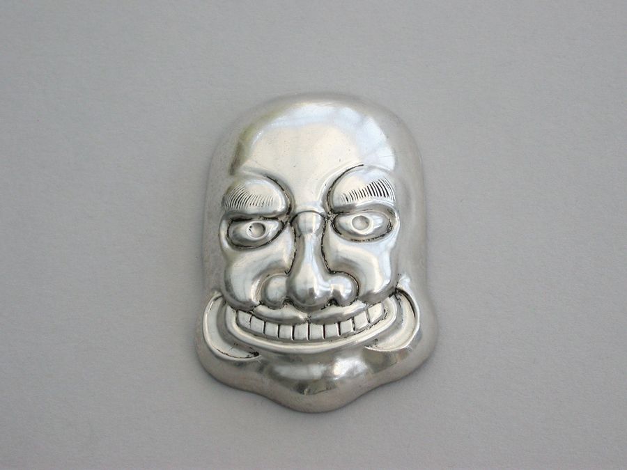 Victorian Aesthetic Silver Japanese Noh Mask Vesta Case