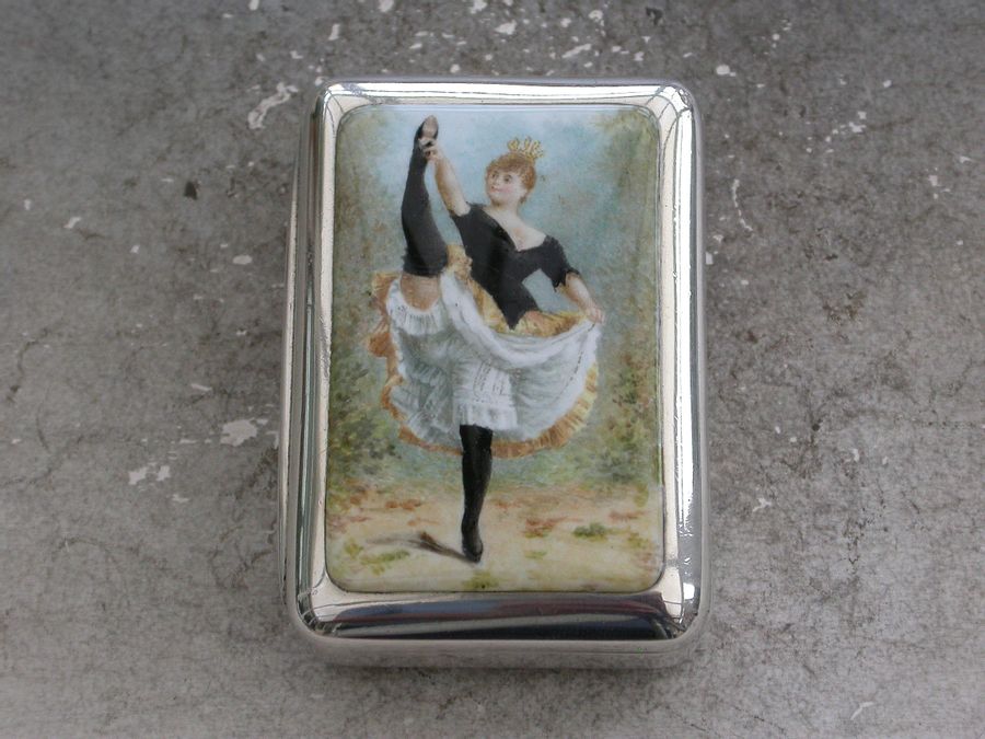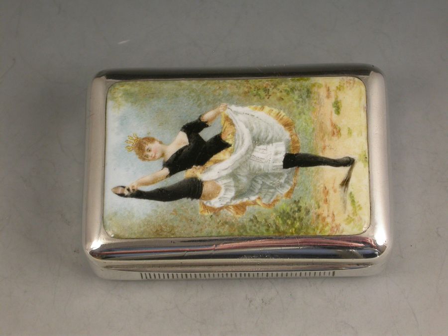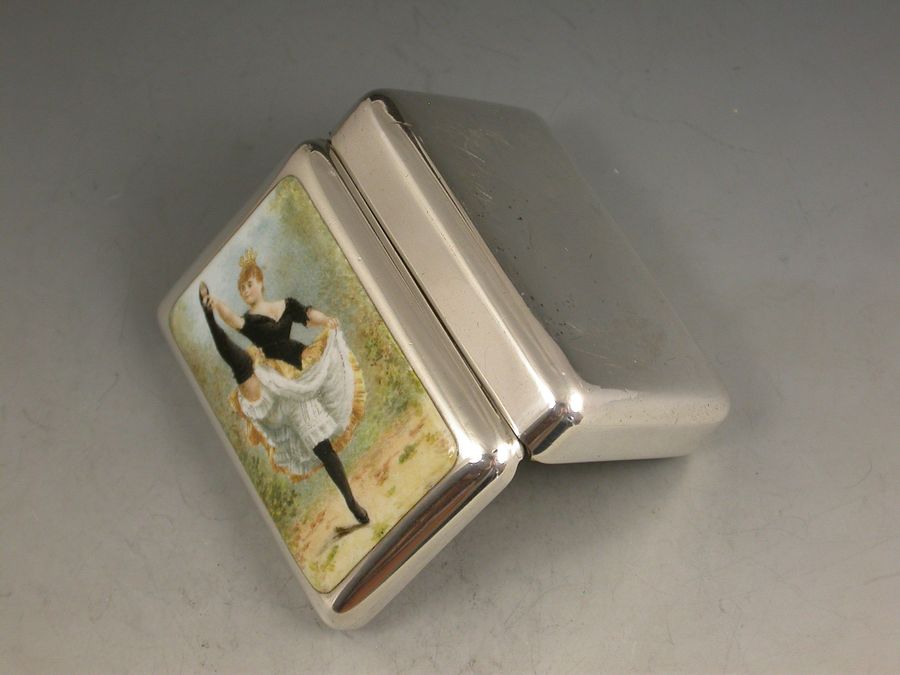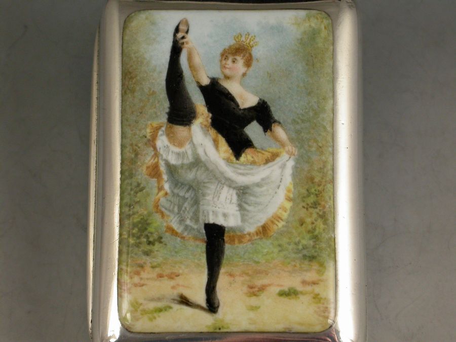Victorian Antique Silver & Enamel 'Can Can Girl' Vesta Case Louise Weber - La Goulue