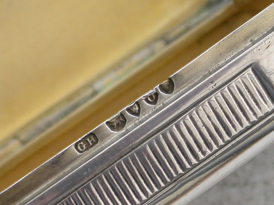 In good condition with just minor surface scratches to the silver base and the enamel panel.