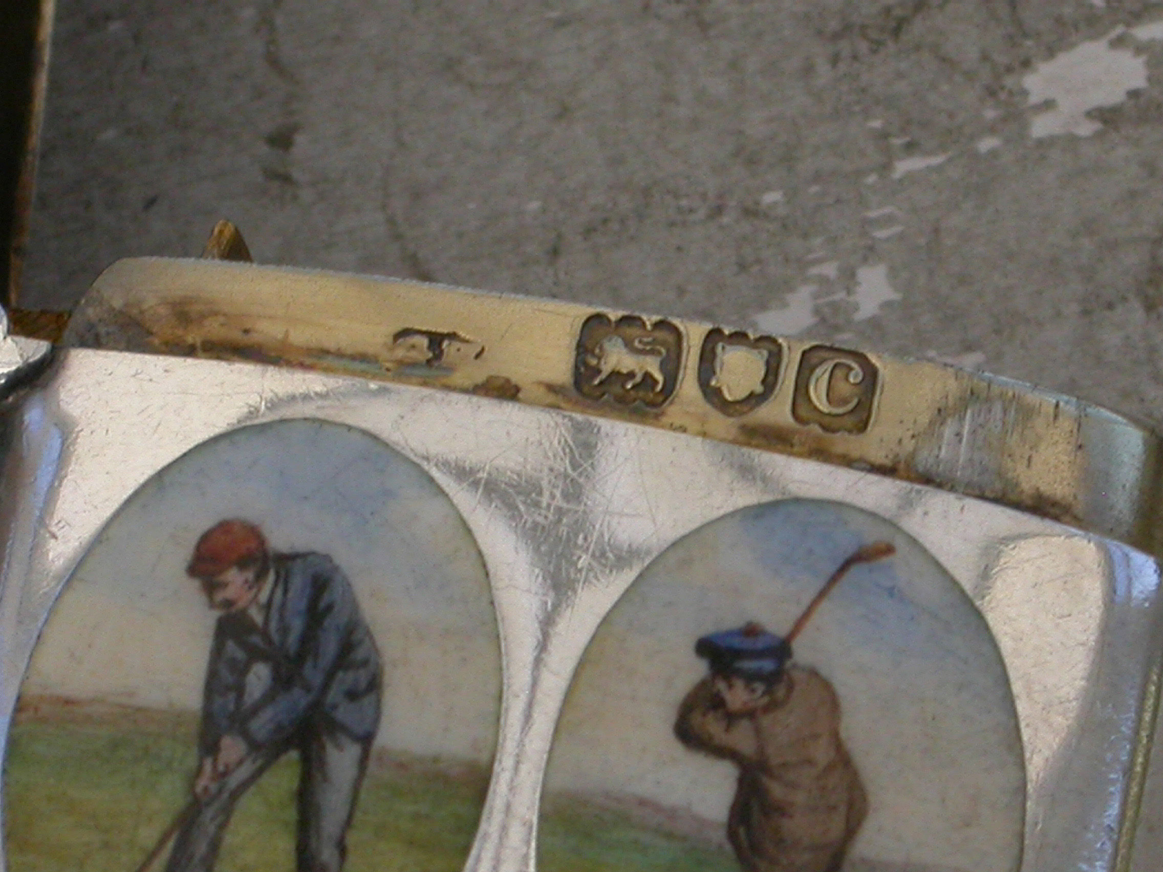 Victorian Antique Silver & Enamel Golfing Vesta Case