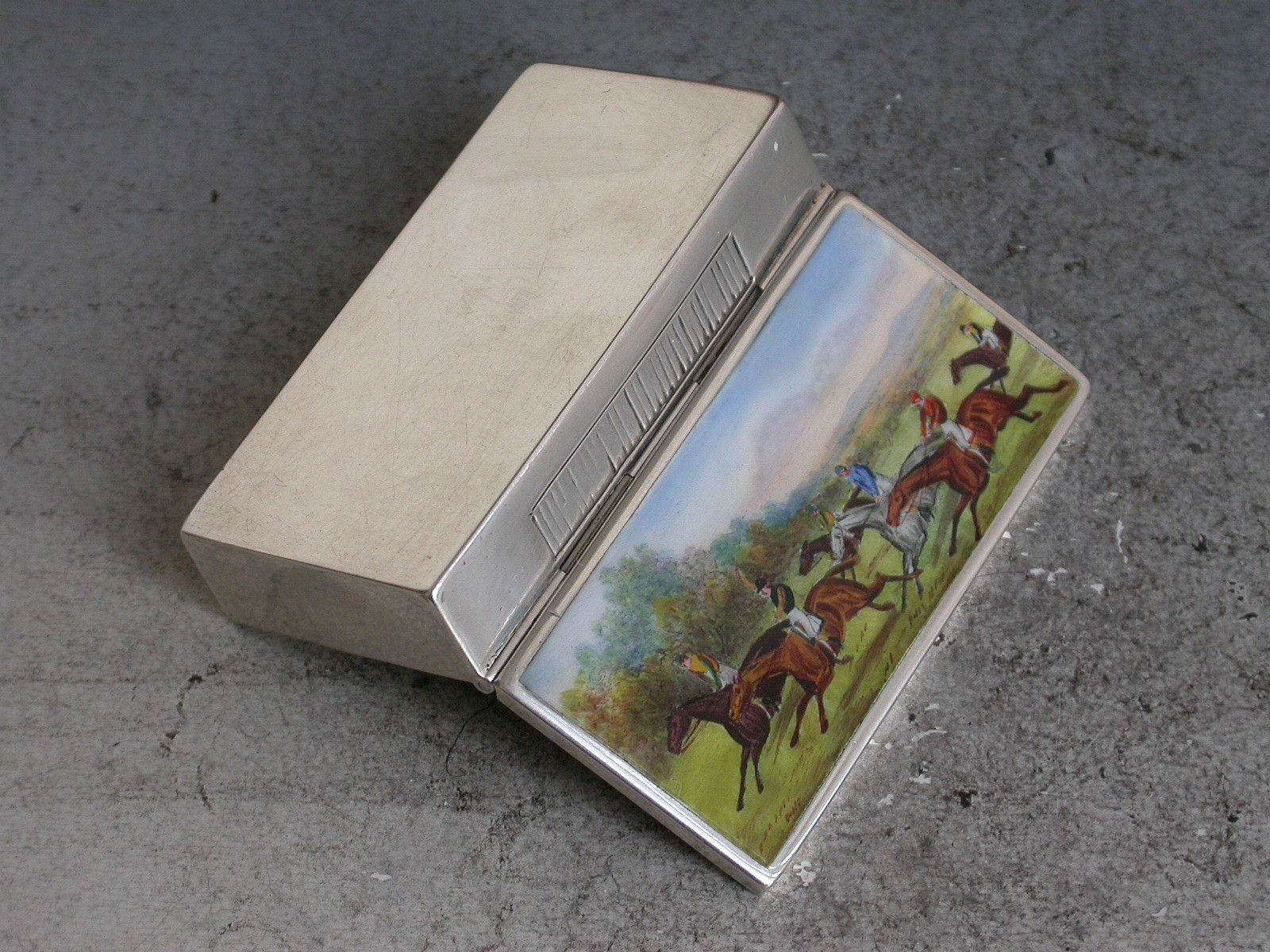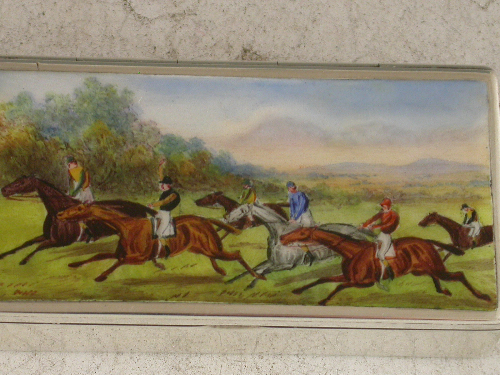 Victorian Antique Silver & Enamel Horse Racing Scene Vesta Case