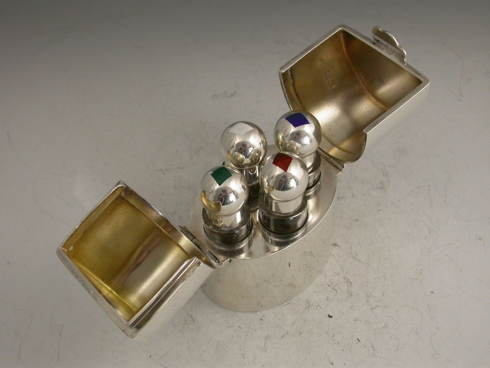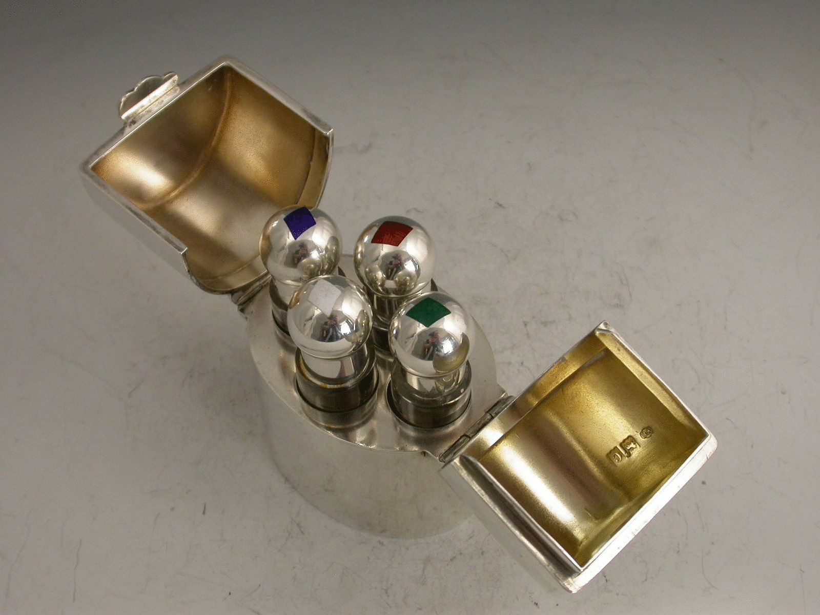 Victorian Antique Silver & Enamel Scent Bottle Compendium