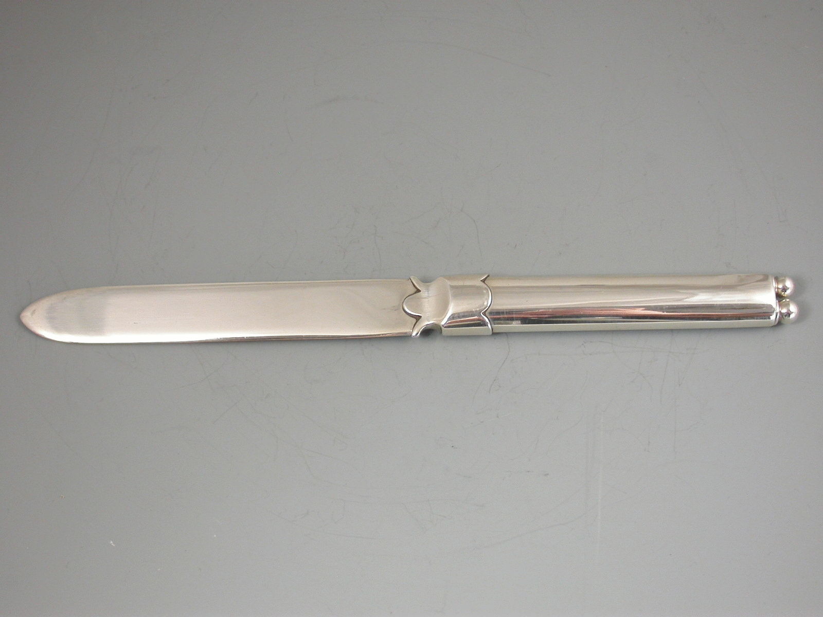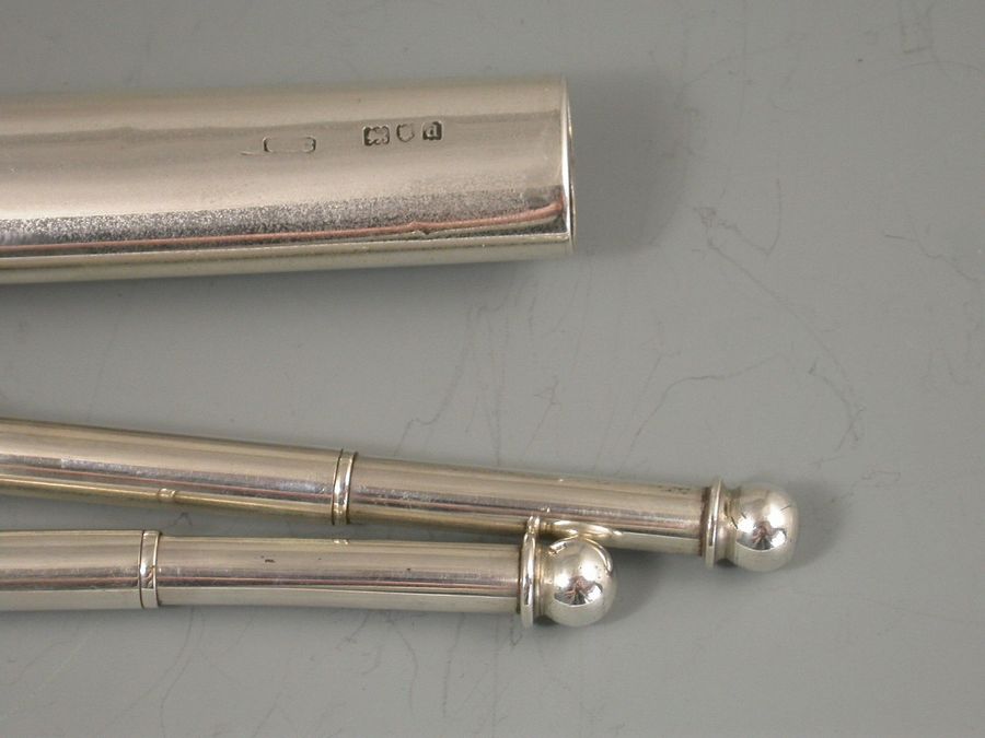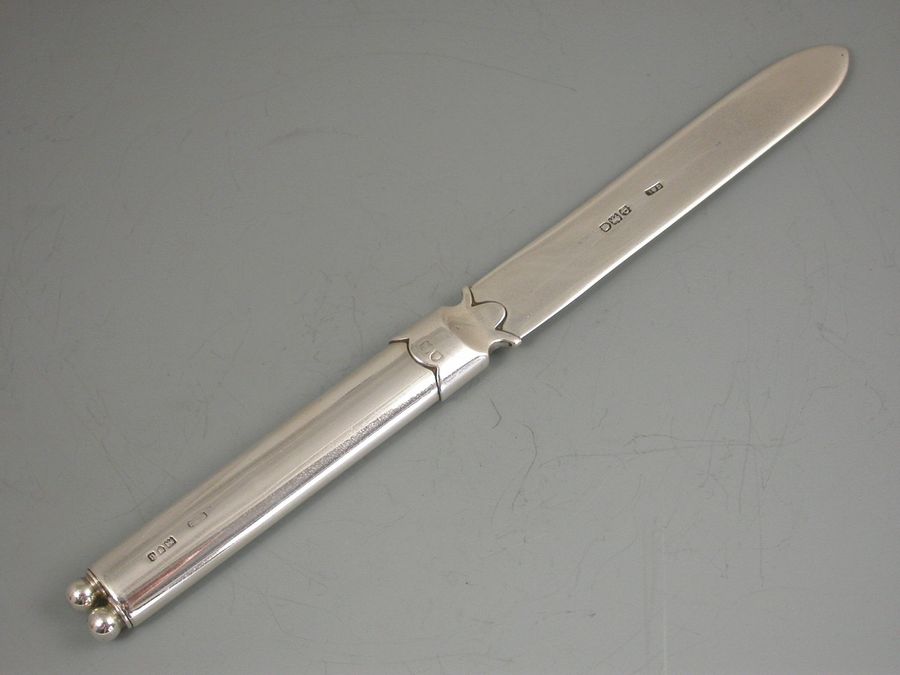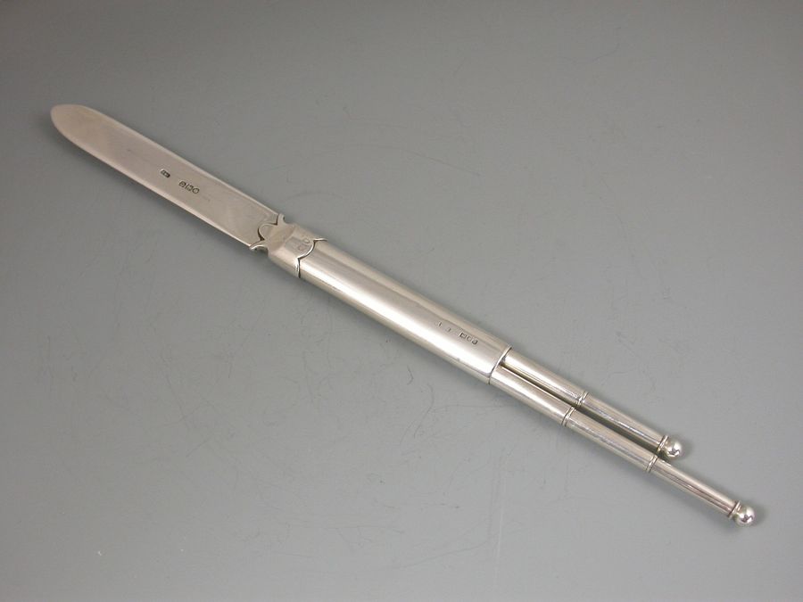 A fine Victorian silver combination Paper Knife with two stage telescopic Dip Pen and Pencil housed within the handle.