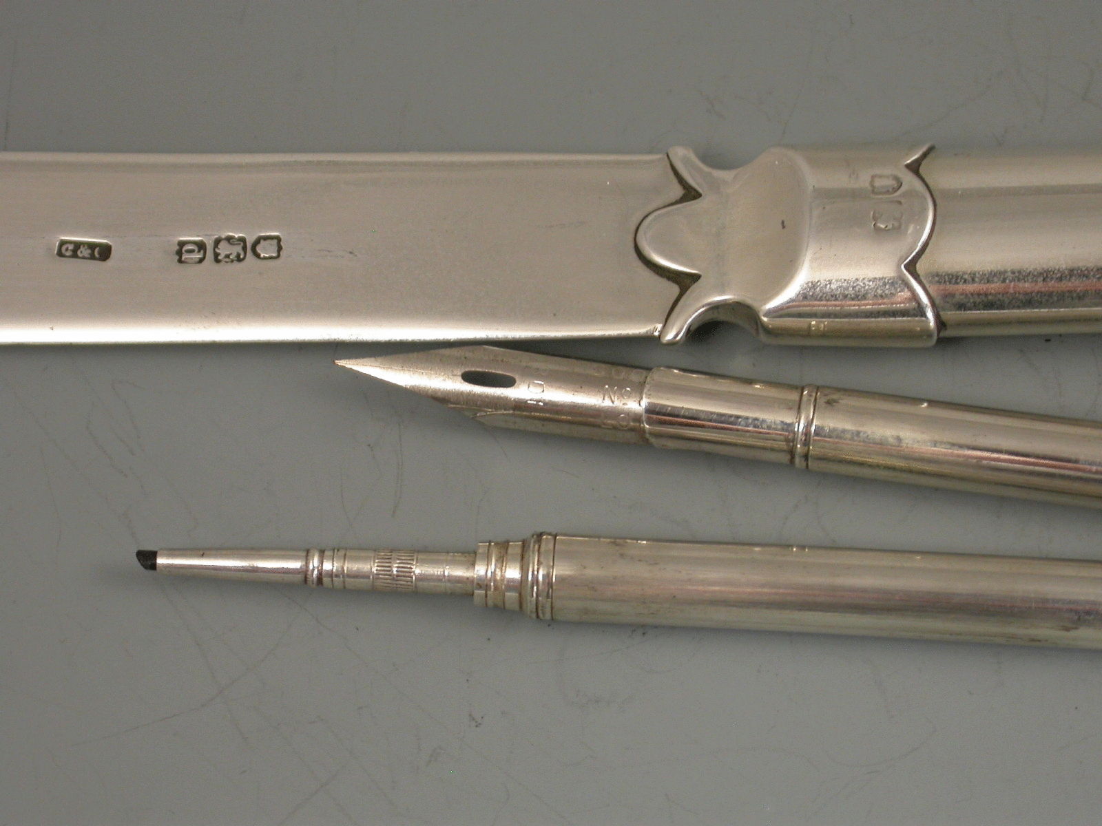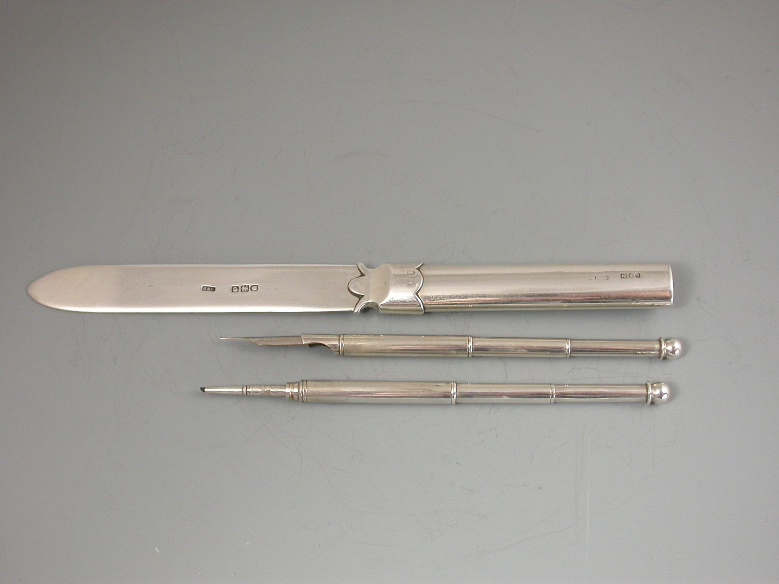 Victorian Antique Silver Combination Paper Knife / Dip Pen / Propelling Pencil
