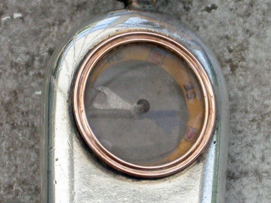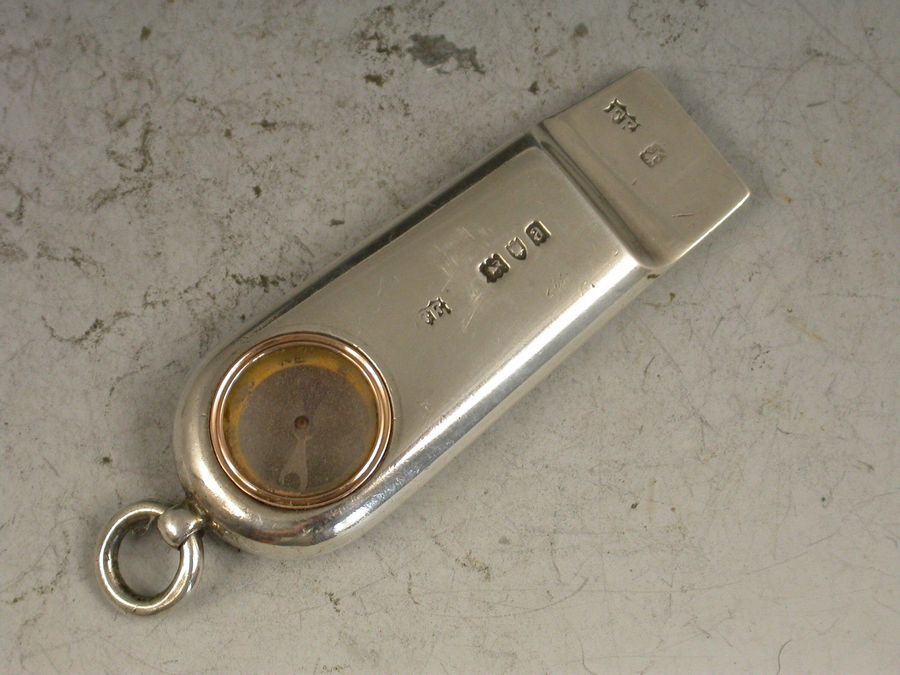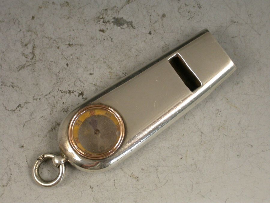A good quality Victorian silver Whistle with attached suspension ring, the handle inset with a gold framed Compass.