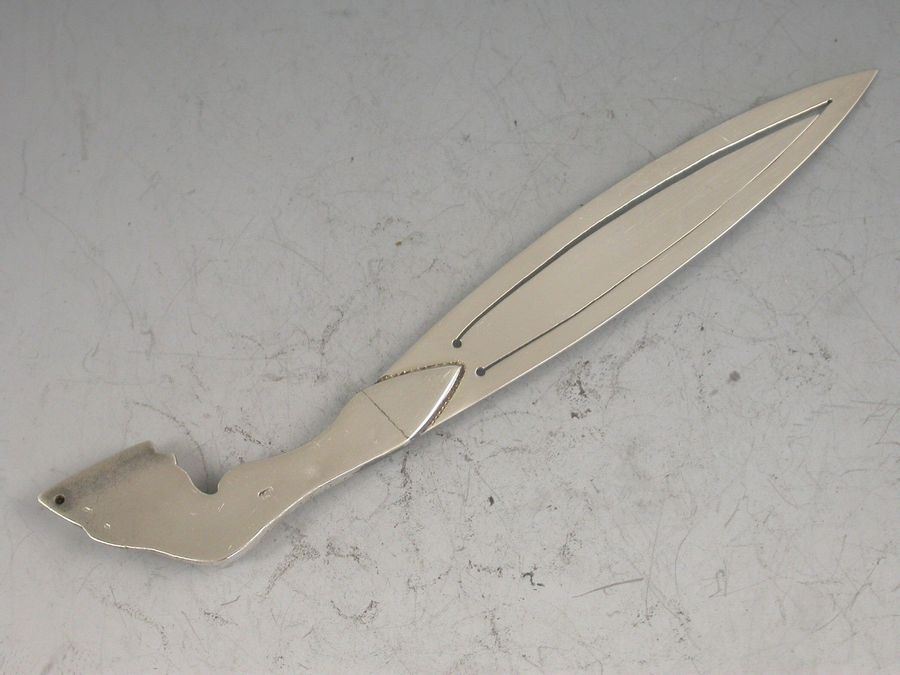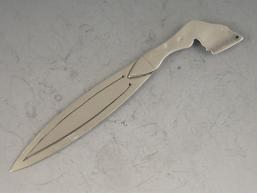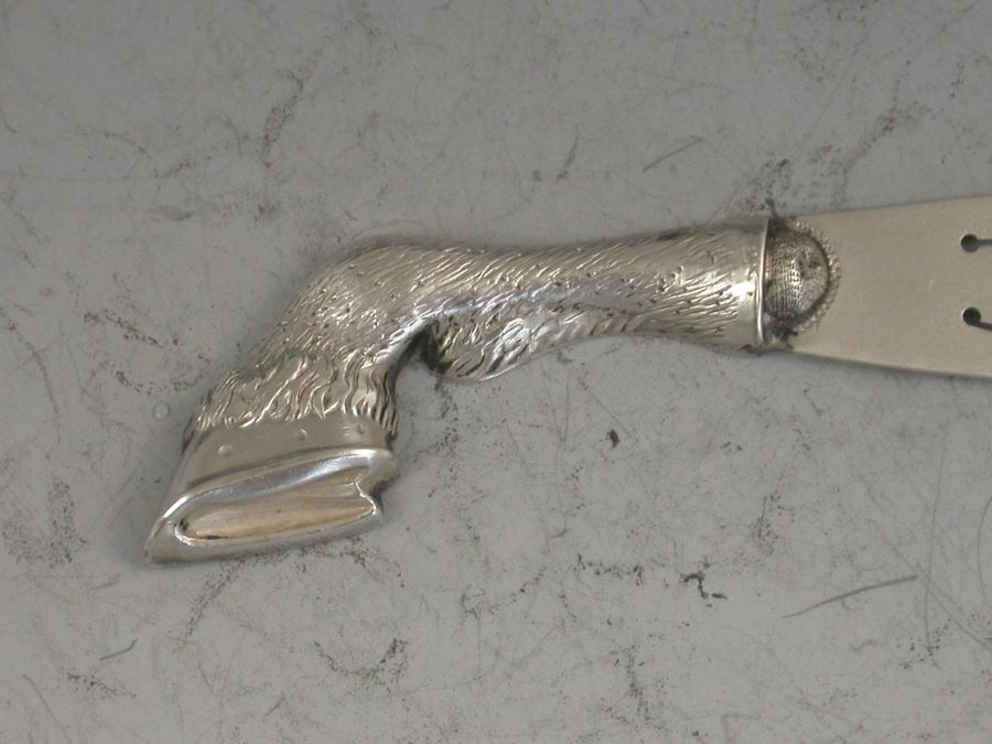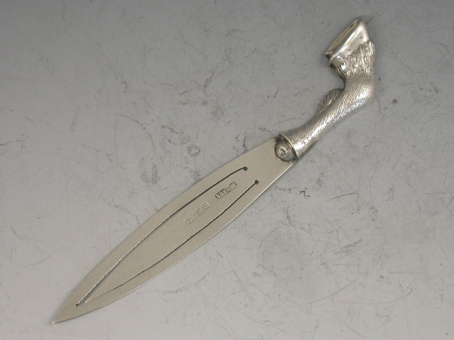 A rare Victorian silver Bookmark with dagger shaped blade, the handle formed as a horses hoof complete with horseshoe.