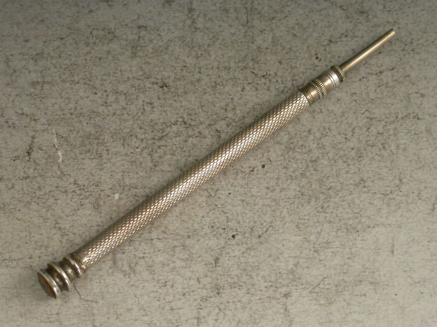 The engine turned silver Pencil with removable terminal with citrine coloured seal stone.