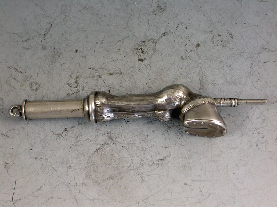 A rare Victorian novelty silver Propelling Pencil made in the form of a Horses Hoof and fetlock.