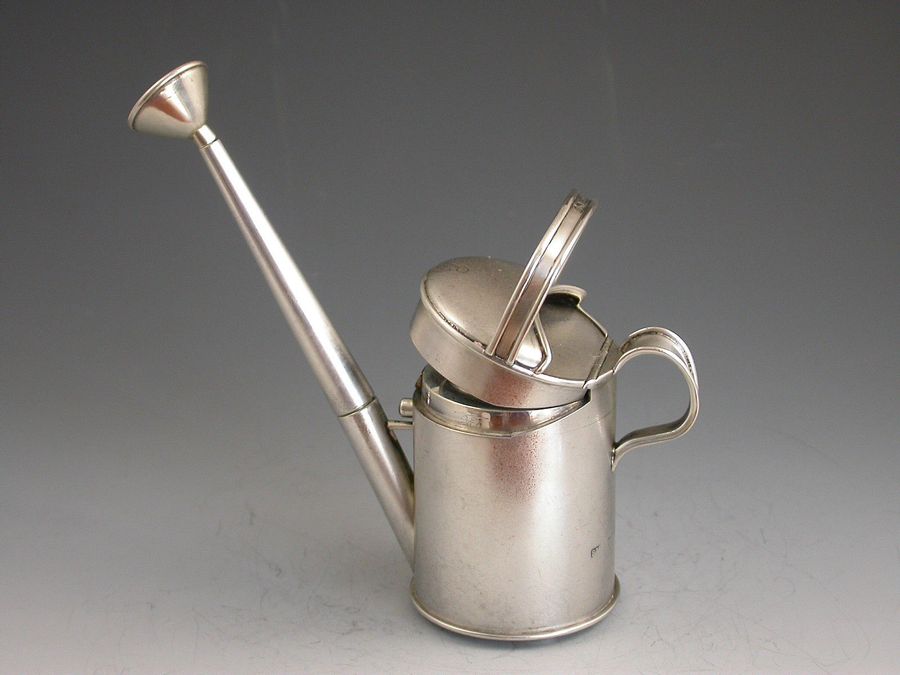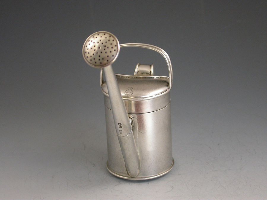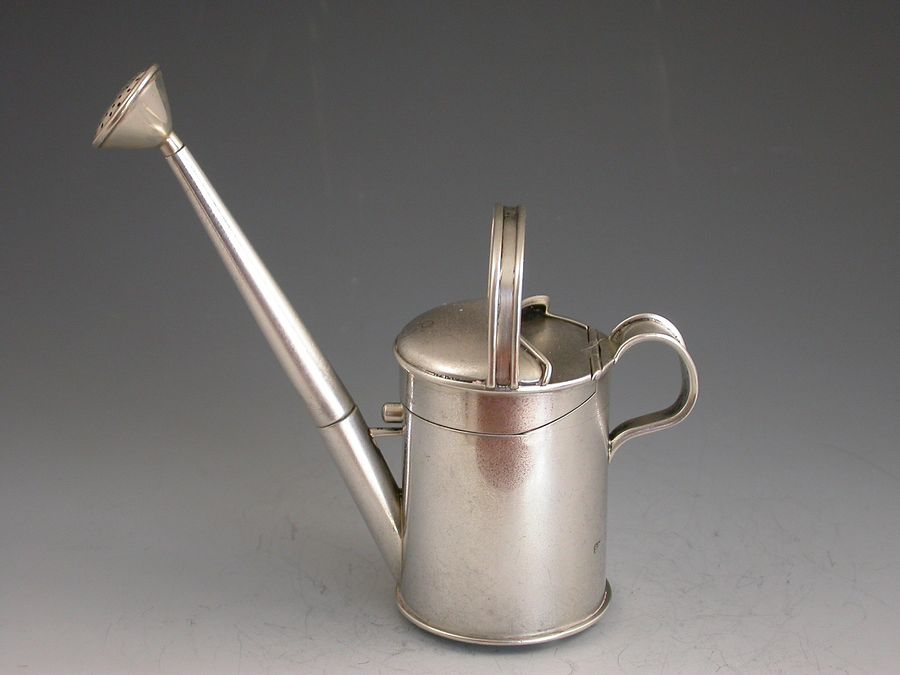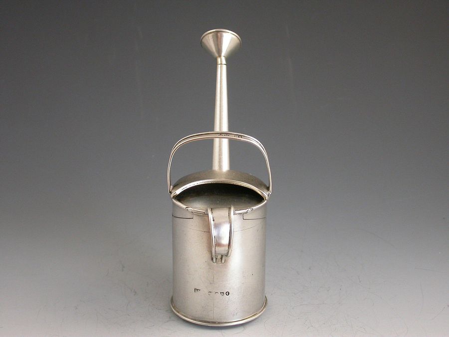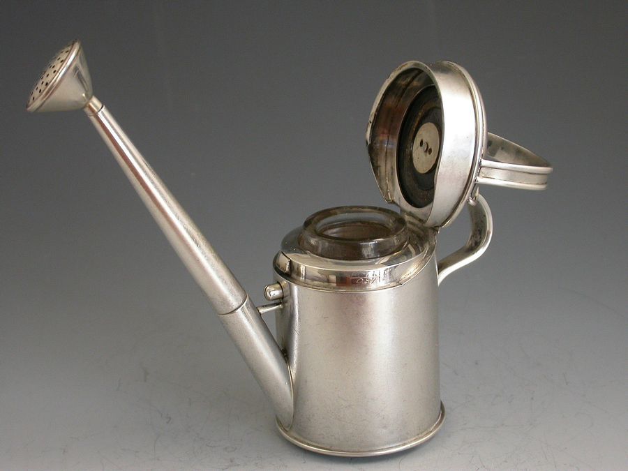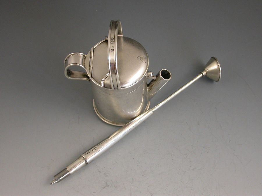 Victorian Antique Silver Novelty Watering Can Inkwell & Penner
