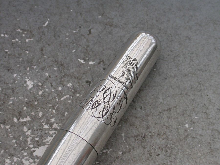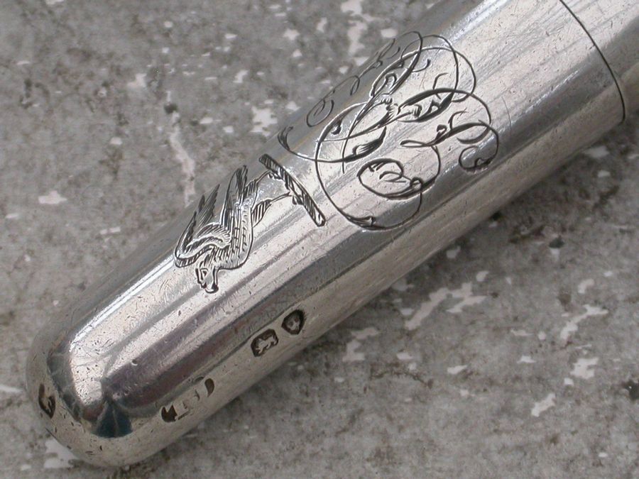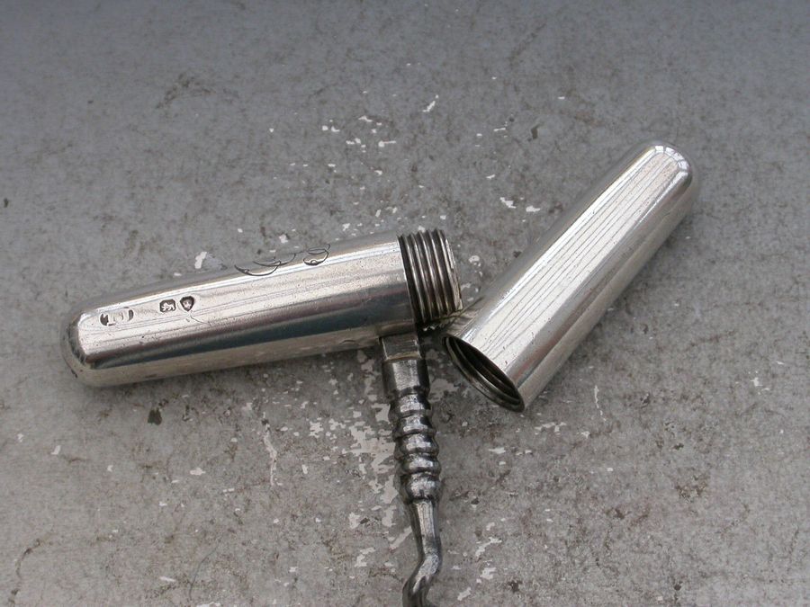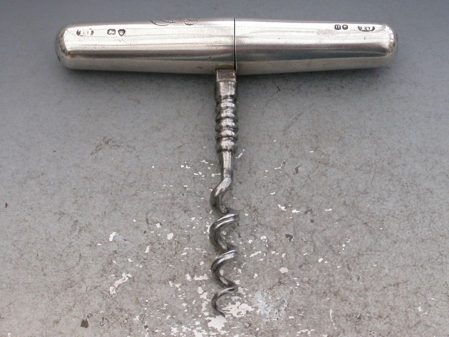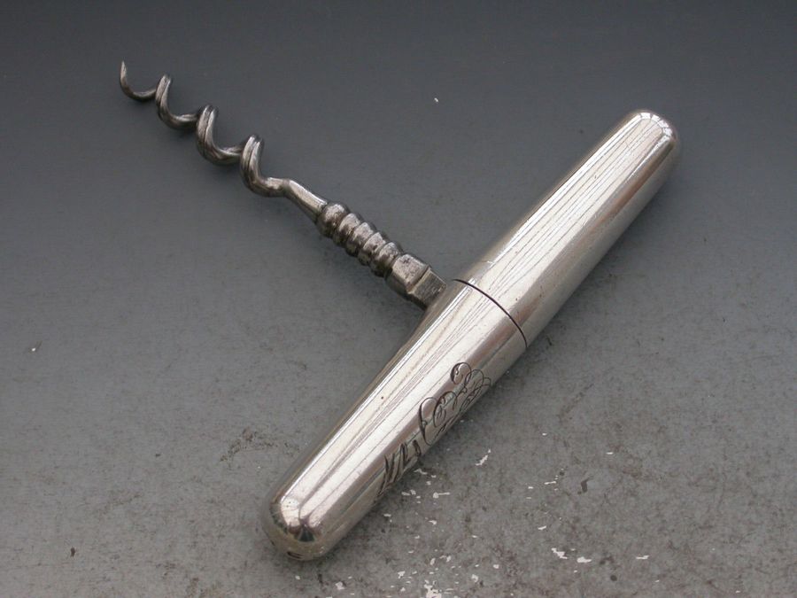 A good quality Victorian silver Roundlet Cork Screw, the plain silver handle engraved with the crest of an eagle above a cypher ""GAG"", the steel helix retaining its full original length.