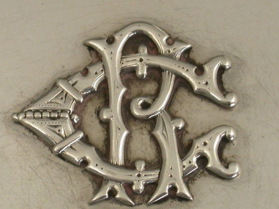 A good Victorian silver Smoker's Compendium of rounded oblong form with a curved base, a hinged vesta compartment, a hinged striker plate, a compartment for cheroots and a slow match or taper tube with a knurled wheel to extend. Applied monogram ""RC"".