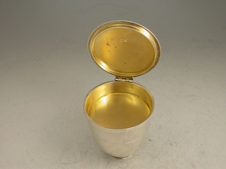 An extremely well made Victorian silver Travelling Condiment Set, of domed beehive form with flat hinged base and unscrewing into three section with gilded interiors and covers.