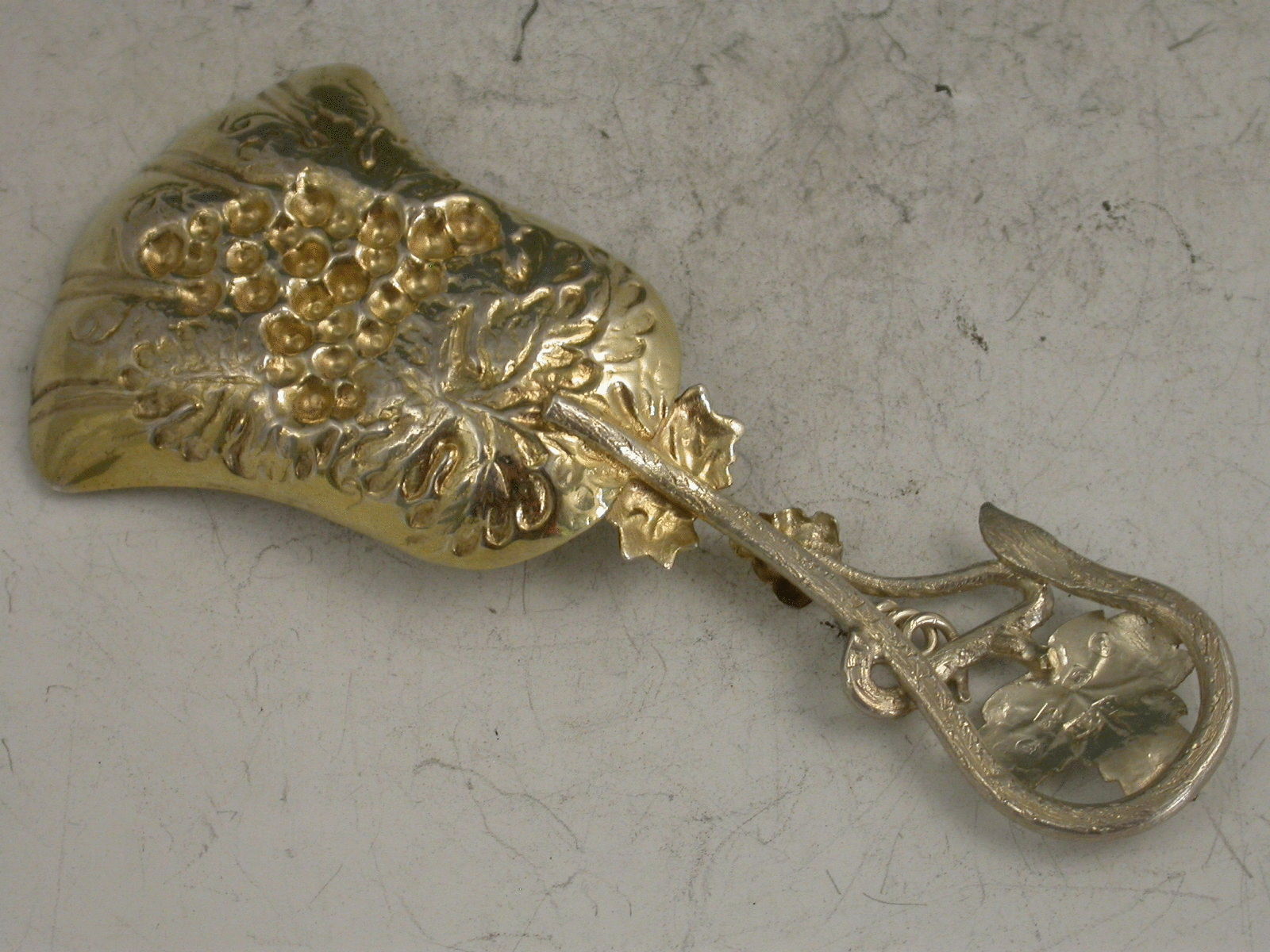 Victorian Antique Silver Vine Leaf & Grape Caddy Spoon