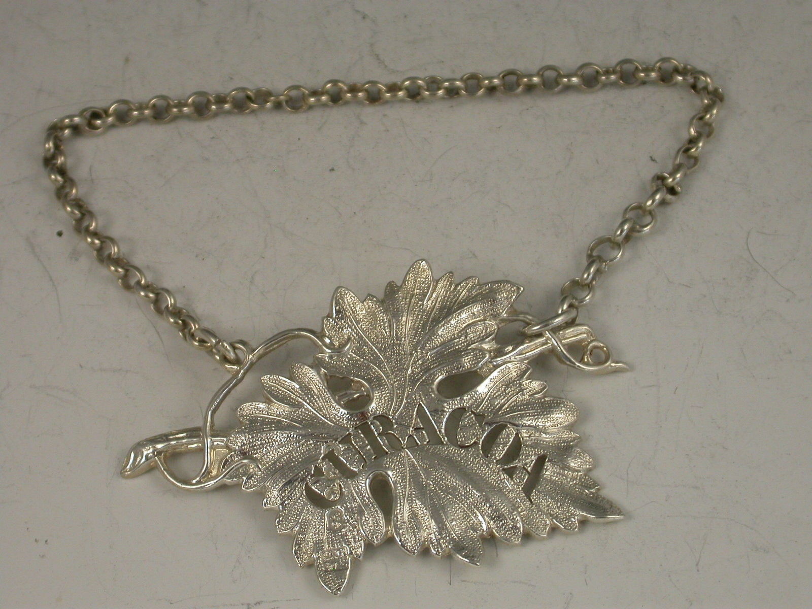 Victorian Antique Silver Vine Leaf Wine Label 'Curacoa'