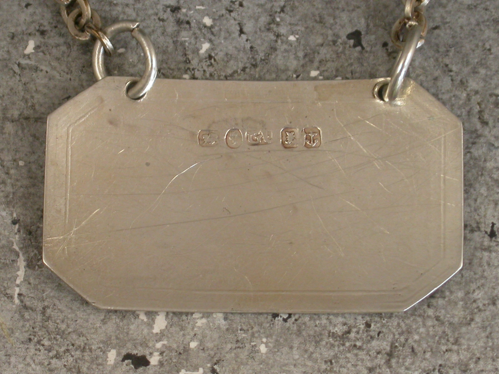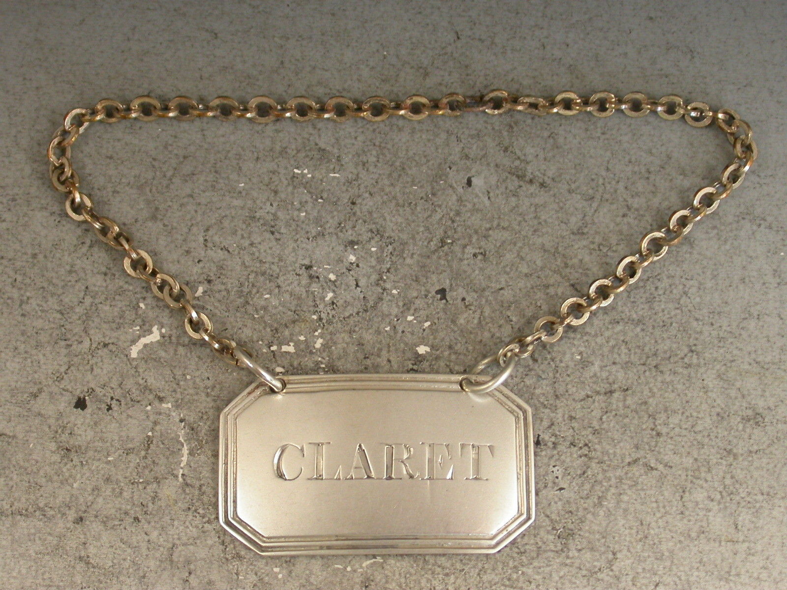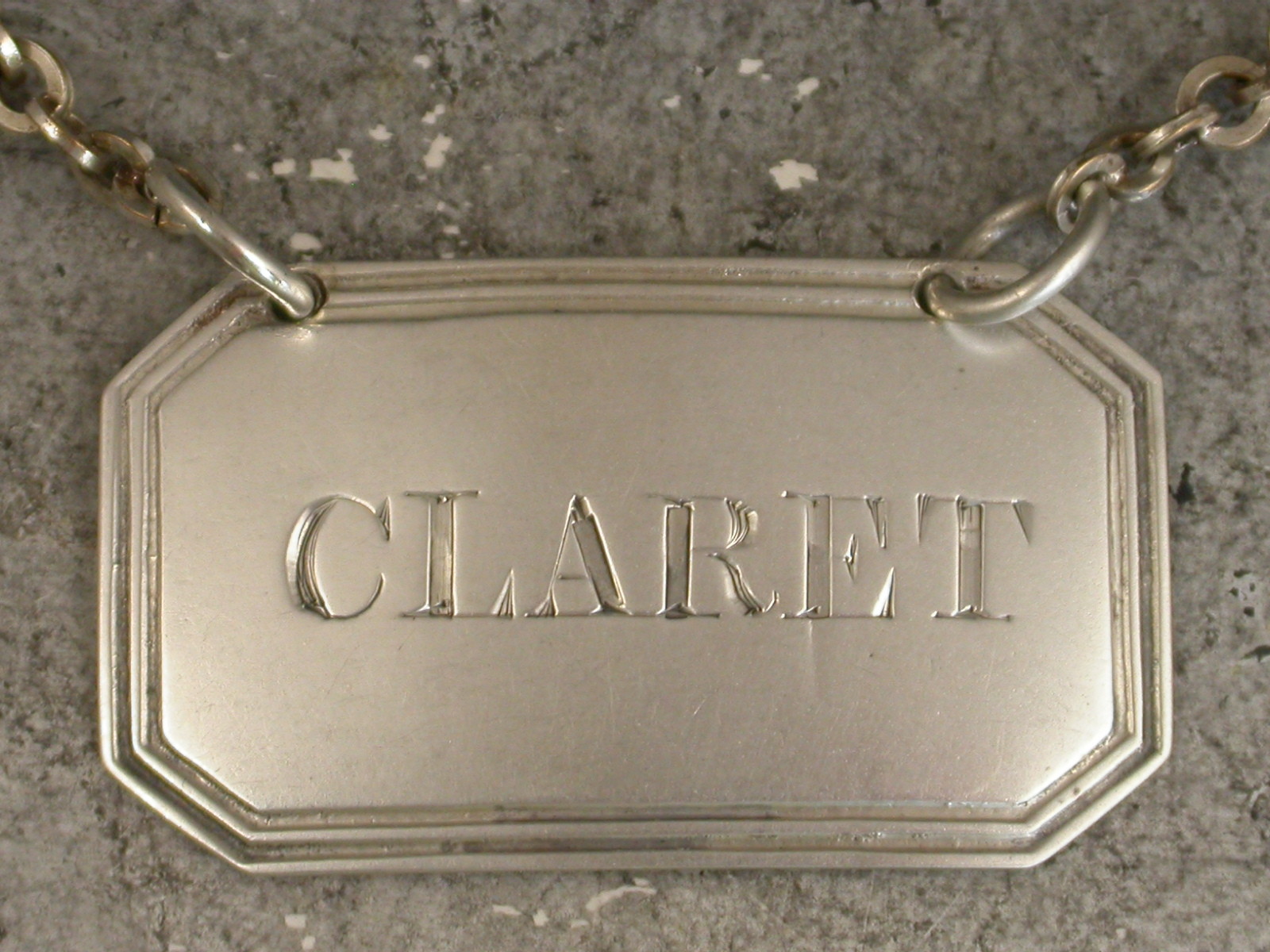 A Victorian silver Wine Label of plain cut-cornered rectangular form with double reeded border, incised for Claret.