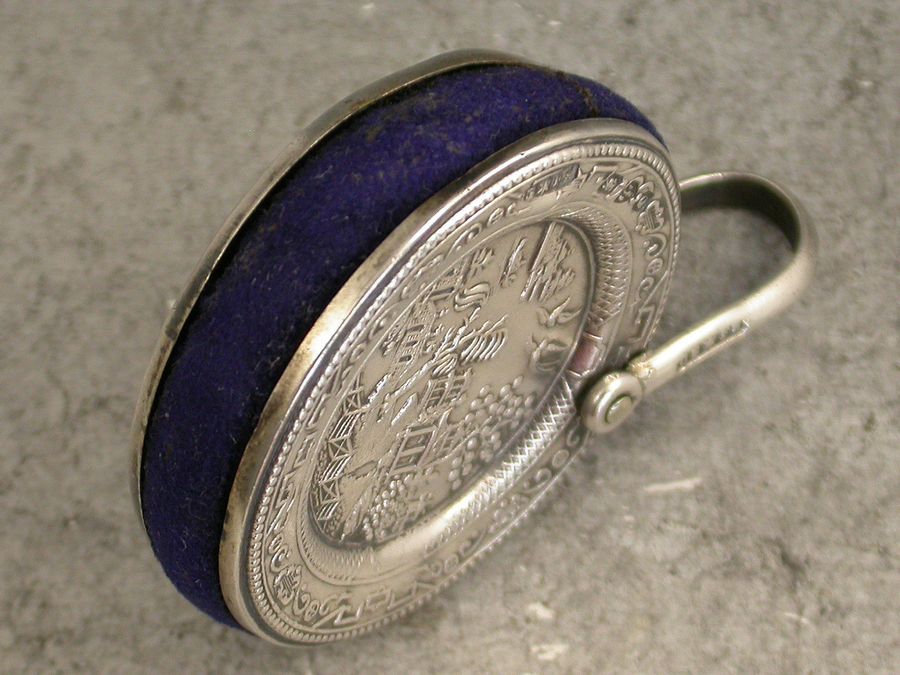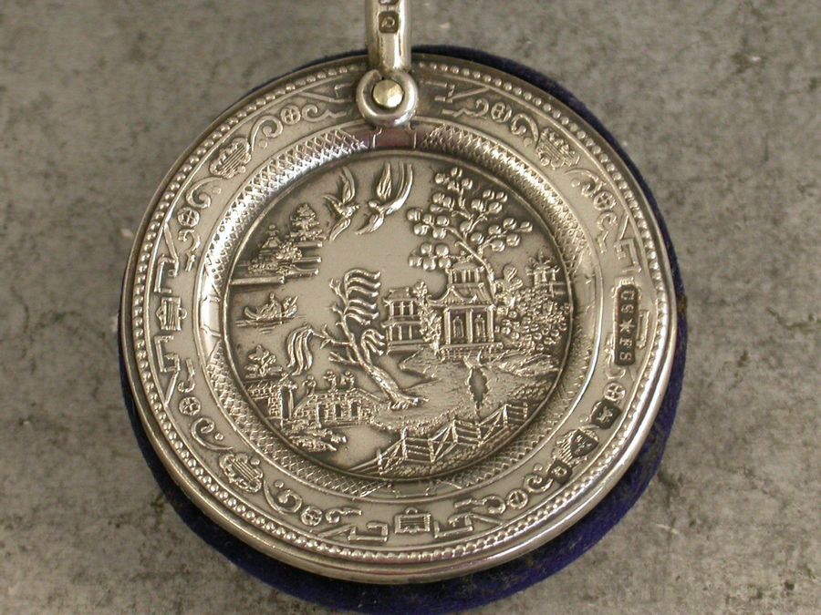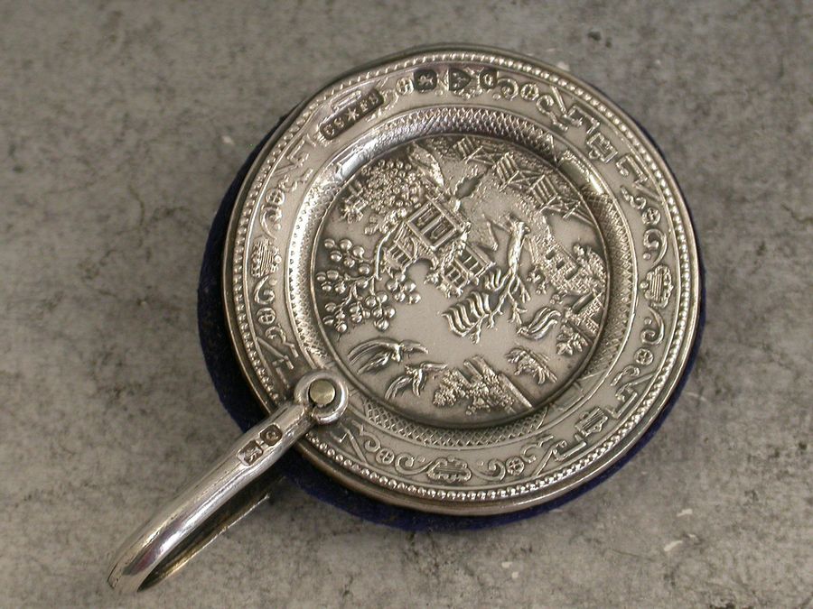 Victorian Antique Siver Willow Pattern Plate Pin Cushion