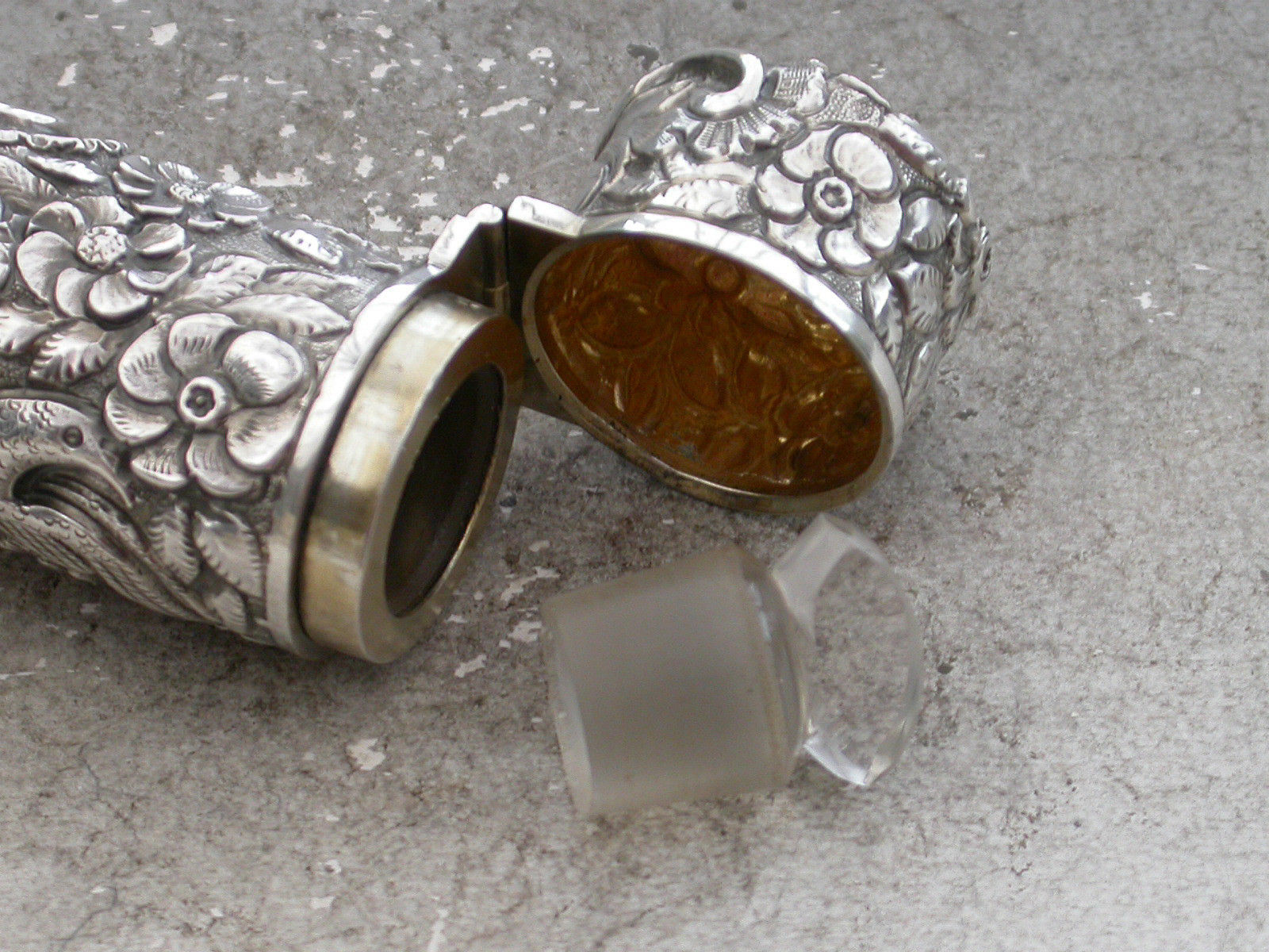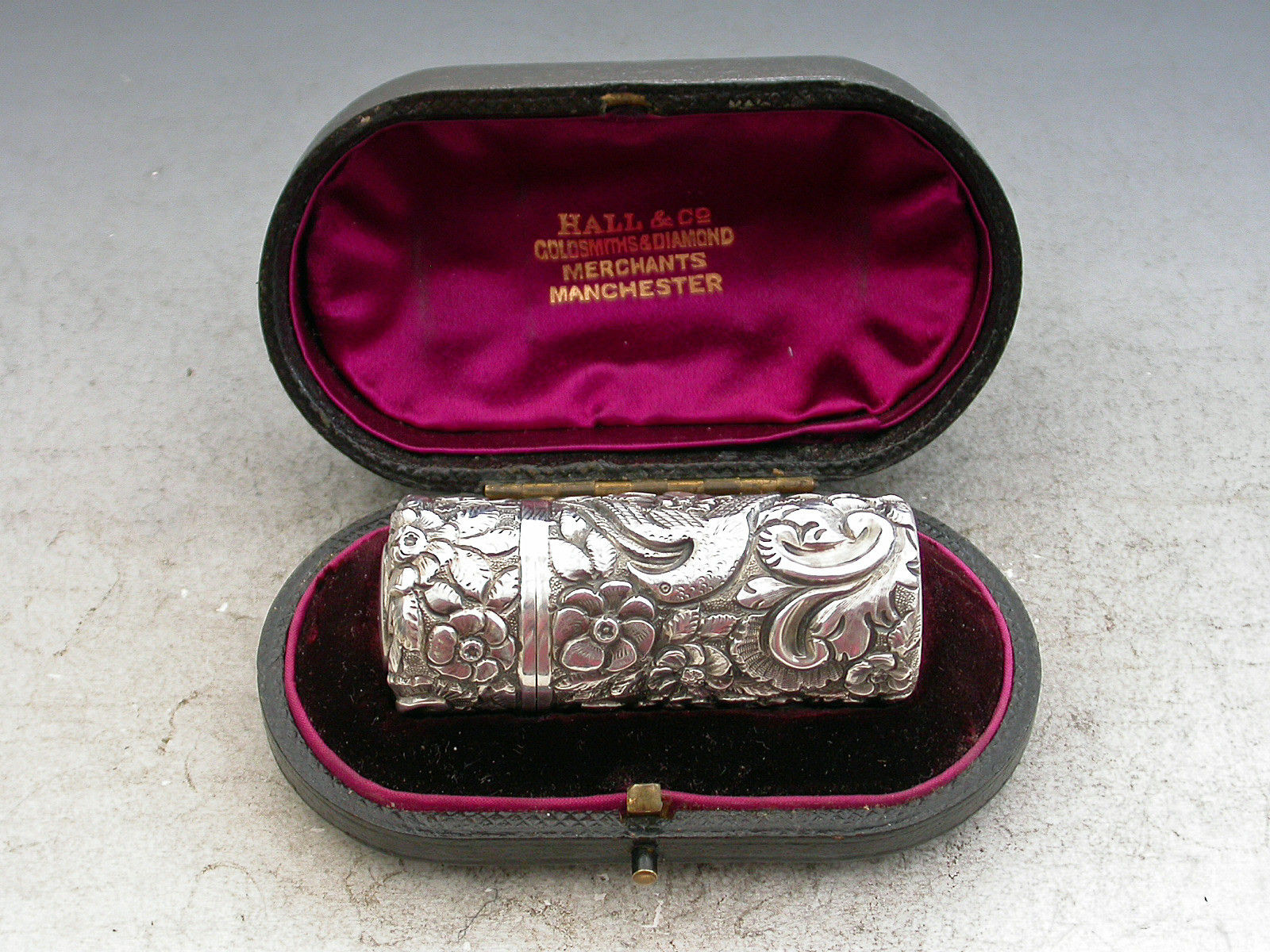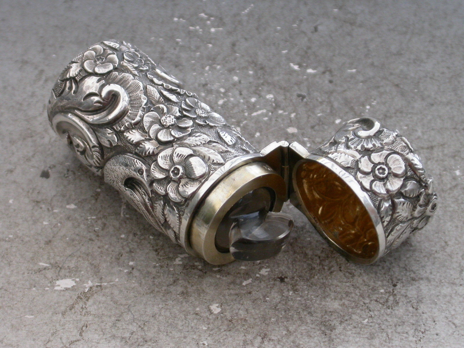 Victorian Cased Antique Silver Scent Bottle Chased with Birds