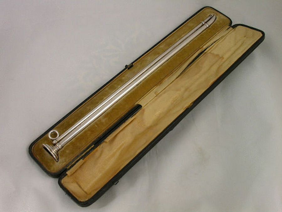 A rare Victorian cased silver Candle Doubter / Taper Stick of double tubular form with sliding mechanism to extend the taper. Complete with original silk and velvet lined fitted leather case.
