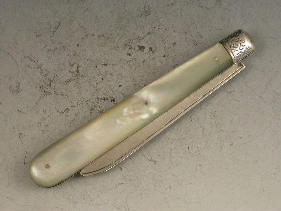 Victorian Cased Silver & Mother of Pearl Folding Fruit Knife