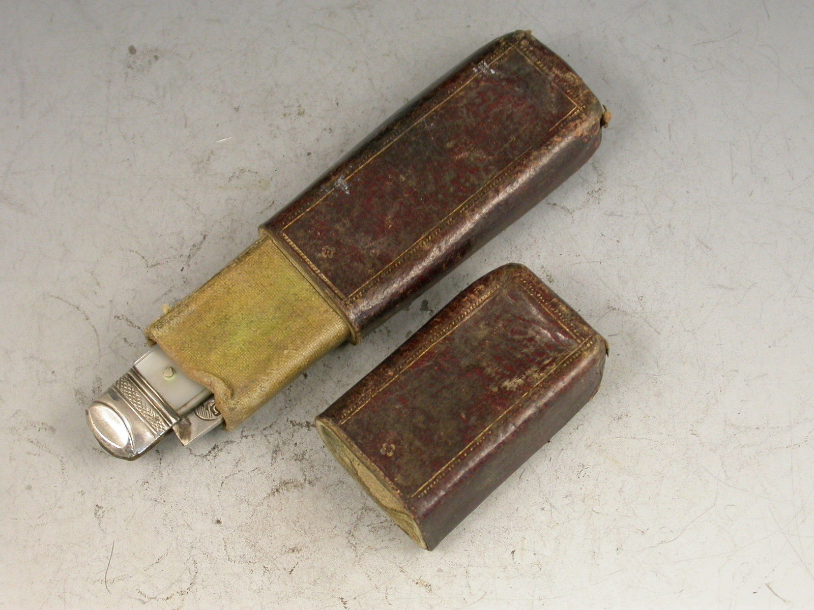 In fine condition with no damage or repair, the leather case rather distressed