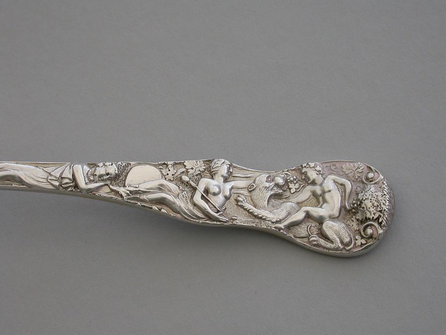 Victorian Cast Silver Bacchanalian Pattern Sugar Sifter Ladle