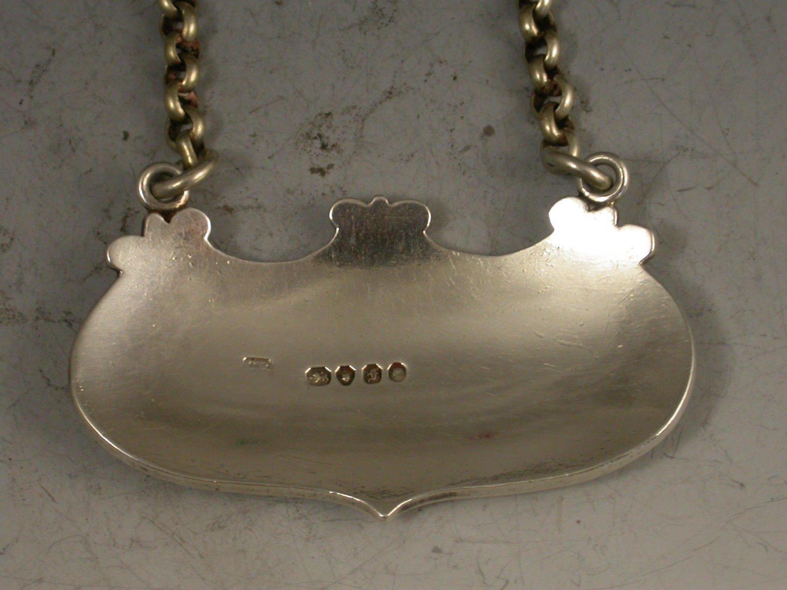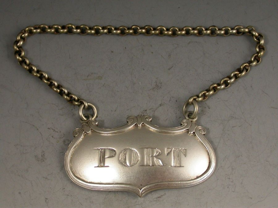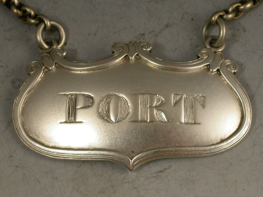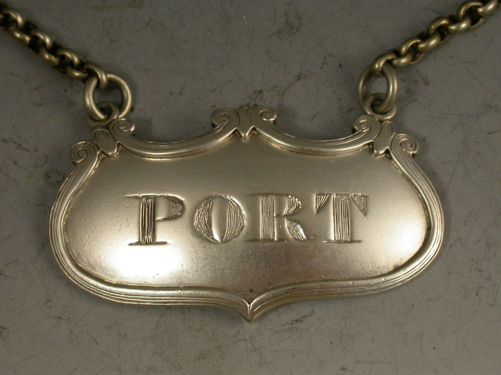 Victorian Cast Silver Elongated Escutcheon Wine Label 'Port'