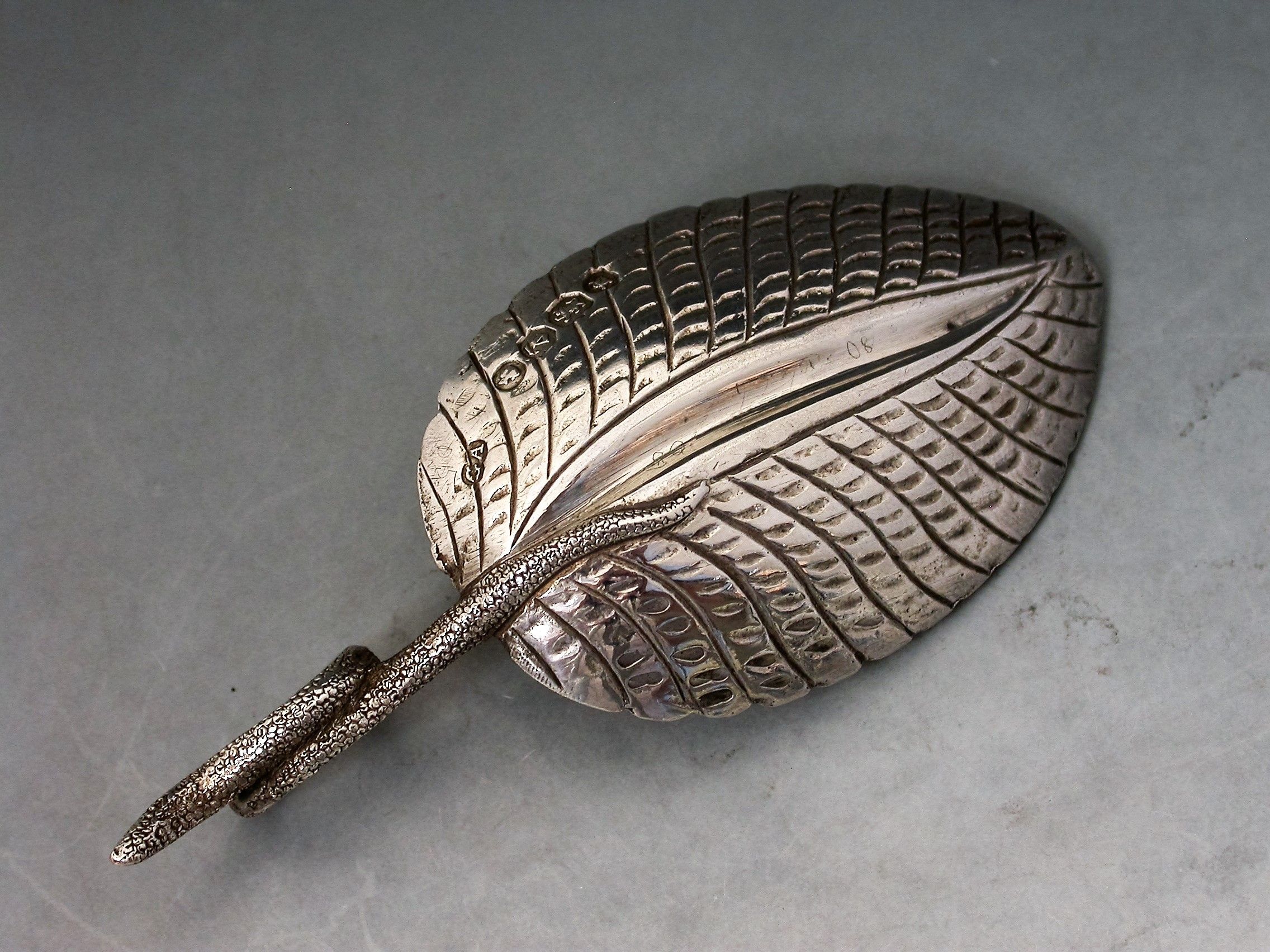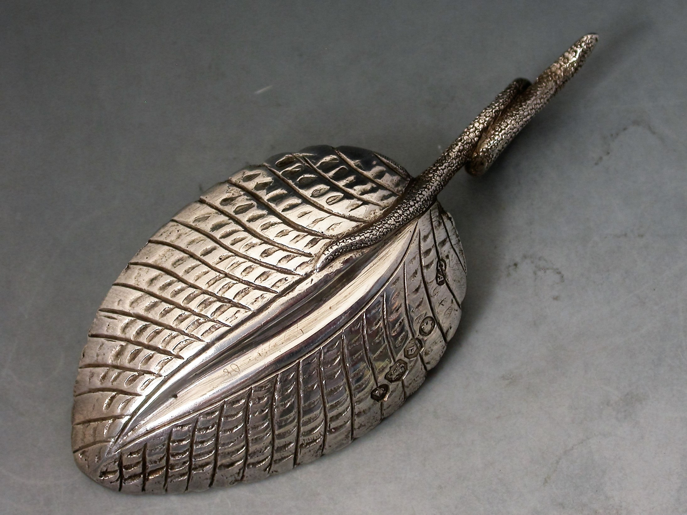Victorian Cast Silver Veined Leaf Caddy Spoon