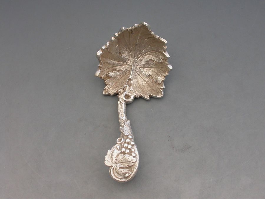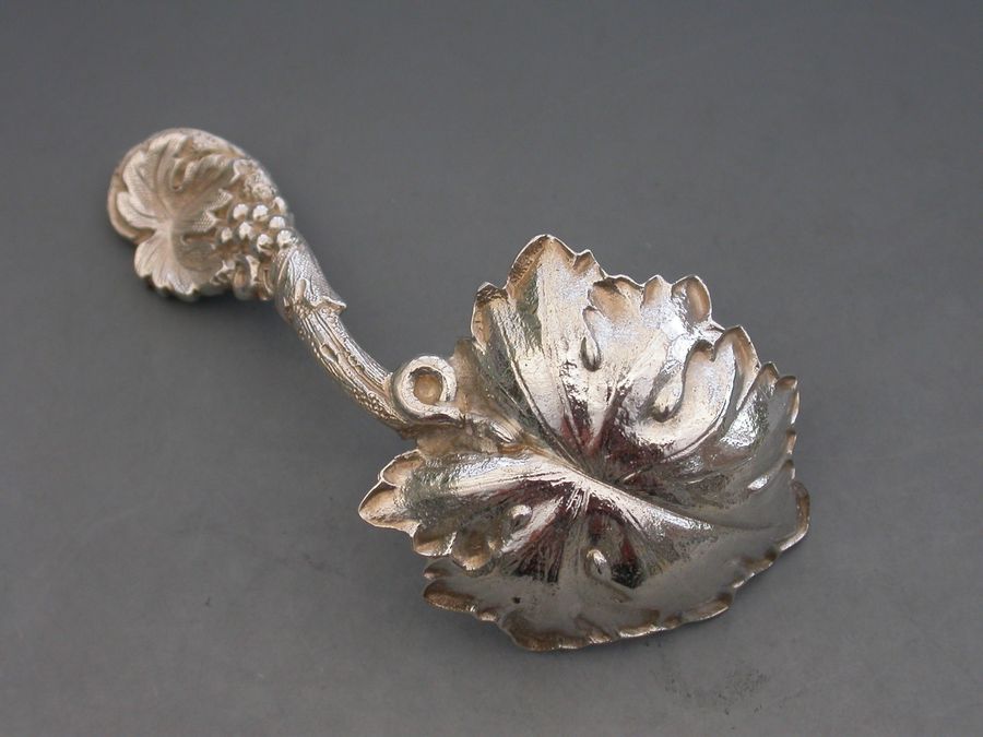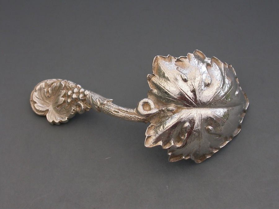 Victorian Cast Silver Vine Leaf Caddy Spoon