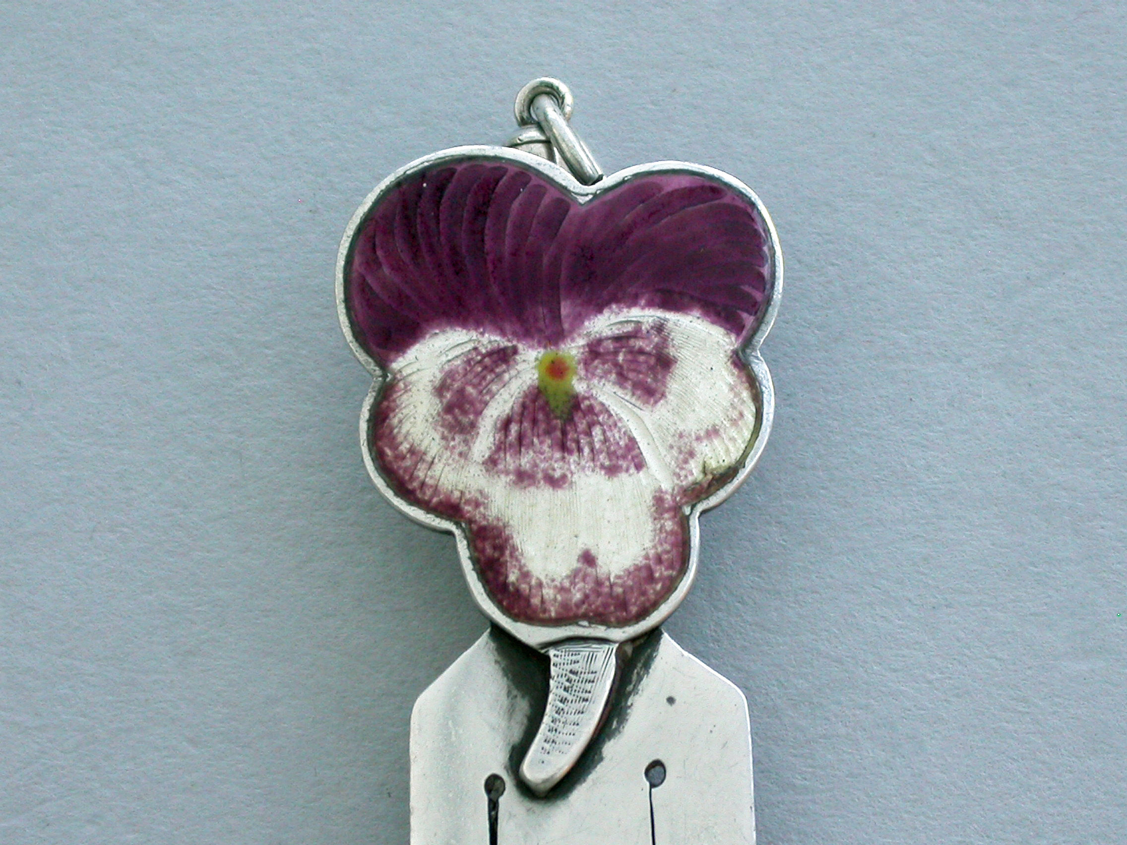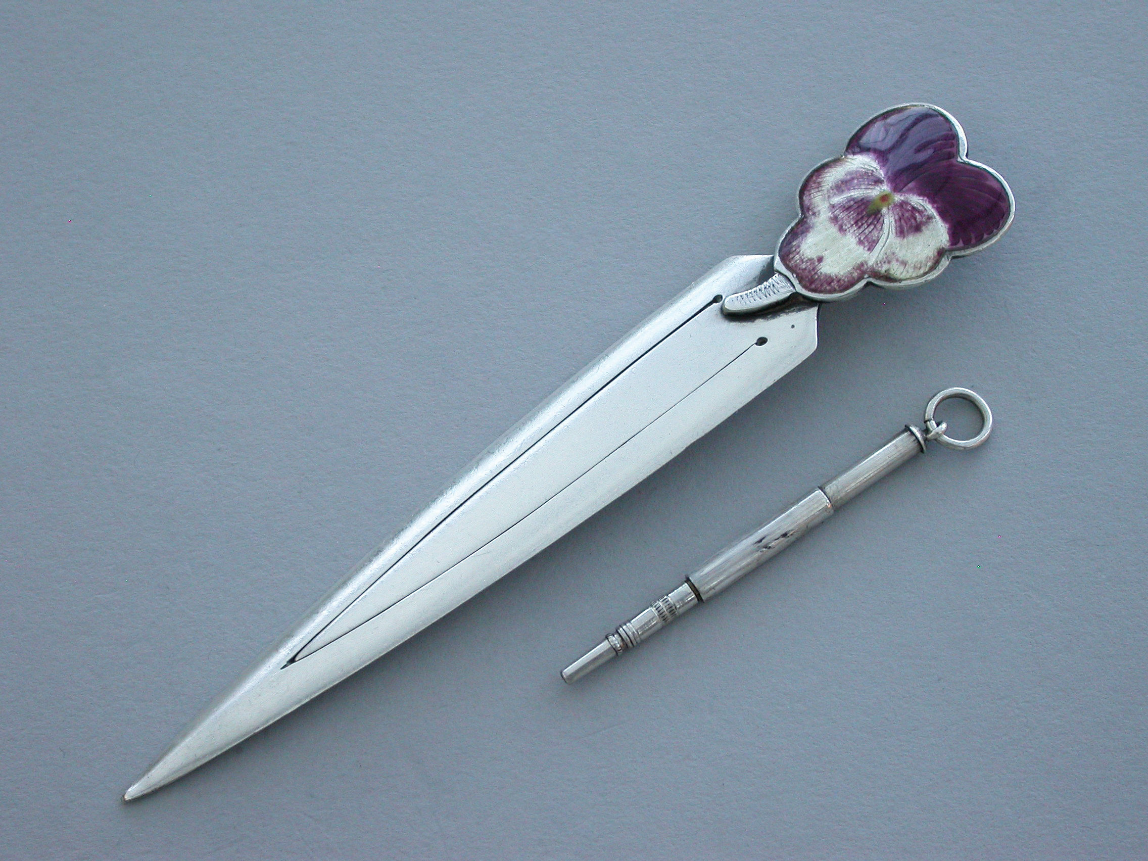 Victorian Combined Silver & Enamel Pansy Flower Bookmark & Propelling Pencil