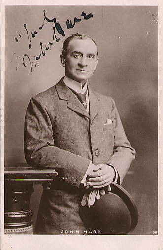Sir John Hare (May 16, 1844 - December 28, 1921), born John Fairs, was an English actor and manager of the Garrick Theatre in London from 1889 to 1895. Sir John was born in Yorkshire and was educated at Giggleswick school, Yorkshire. He made his first appearance on the stage at Liverpool in 1864, coming to London in 1865, and acting for ten years with the Bancrofts at the Prince of Wales Theater. He soon made his mark, particularly in T. W. Robertson's comedies, and in 1875 became manager of the Court theater. But it was in association with Mr. and Mrs. Kendal at the St. James's theater from 1879 to 1888 that he established his popularity in London, in important character and men of the world parts, the joint management of Hare and Kendal making this theater one of the chief centers of the dramatic world for a decade. In 1889 he became lessee and manager of the Garrick theatre, where (though he was often out of the cast) he produced several important plays, such as Arthur Wing Pinero's The Profligate and The Notorious Mrs Ebbsmith, and had a remarkable personal success in the chief part' in Sydney Grundy's A Pair of Spectacles. In 1897 he took the Globe theatre, where his acting in Pinero's Gay Lord Quex was another personal triumph. He became almost as well known in the United States as in England, his last tour in America being in 1900 and 1901. He was knighted in 1907. He retired from the stage by 1911 or 1912, appearing however in two films a few years later.