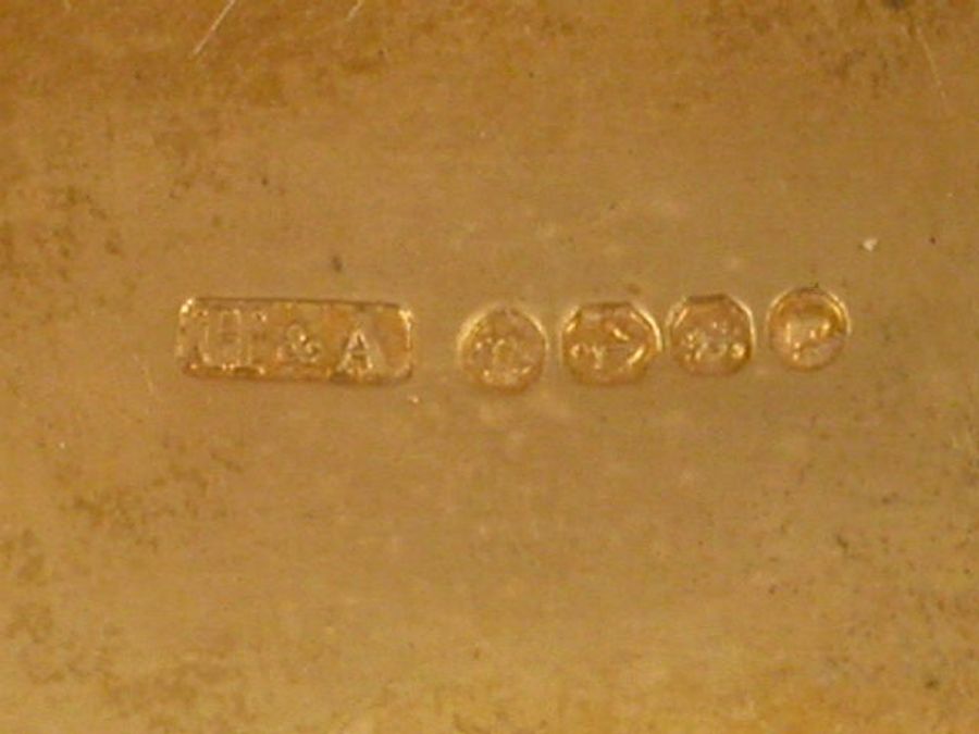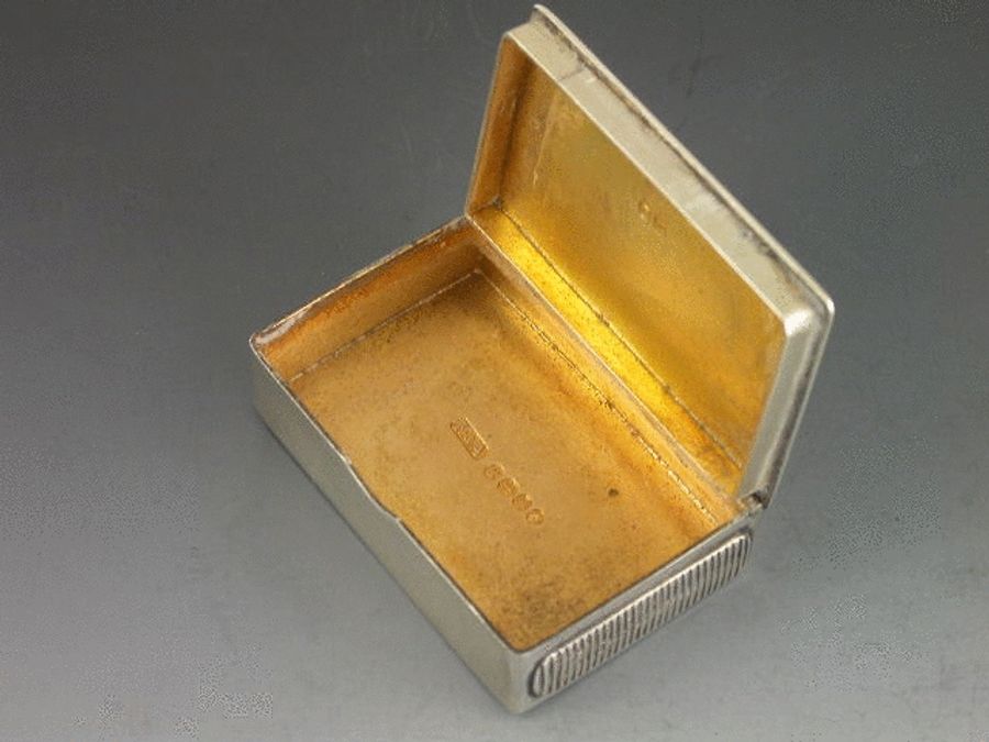 A very fine Victorian silver Vesta Case of rectangular box type form with silver gilt interior, the cover enamelled with a scene of a dog with its head stuck in a milk jug, surrounded by a basket of eggs, vegetables and a broom. Also enamelled with the title “Jugged Puppy” and by permission of Stanley Berkeley.