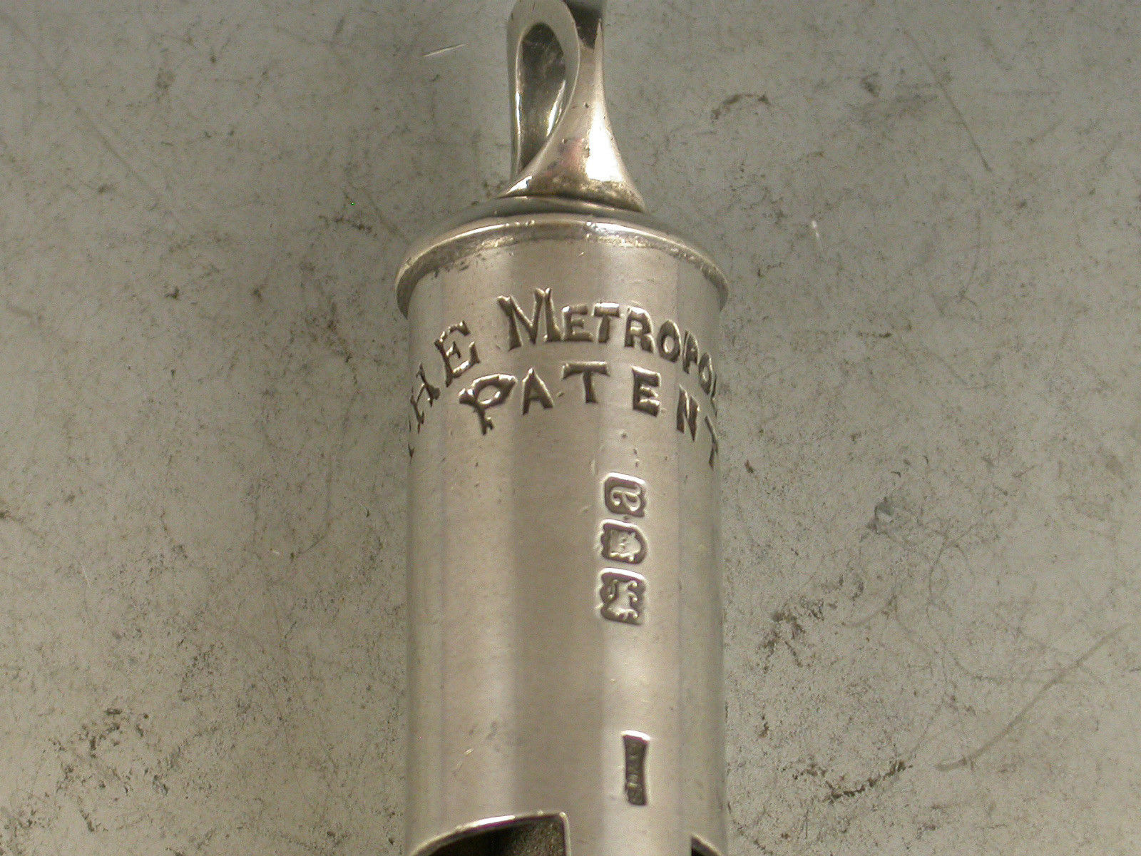 A rare fully hallmarked Victorian silver Metropolitan Patent Police 'type' Whistle with a Hudson's Patent mechanism.