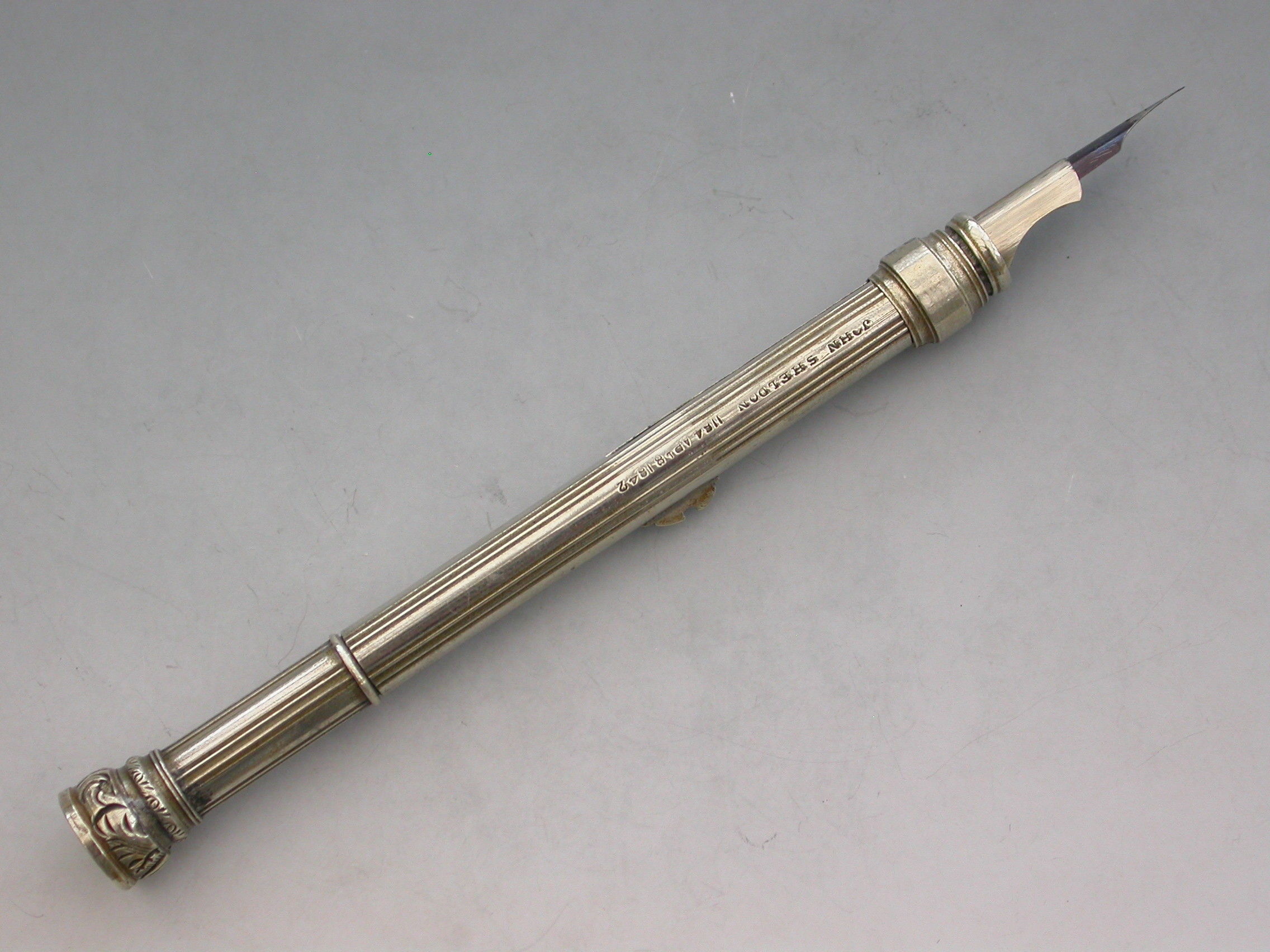 The Registered design for the Paragon Letter and Coin Balance and Pen and Pencil Case was entered on the 8th April 1842, No: 1184