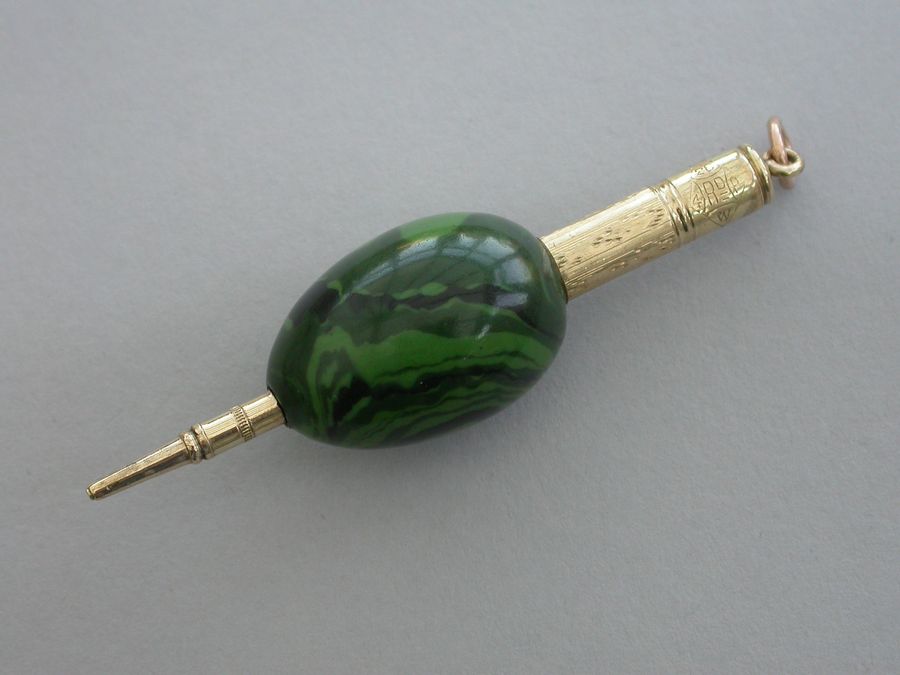 Victorian Gold & Malachite Egg Shaped Propelling Pencil