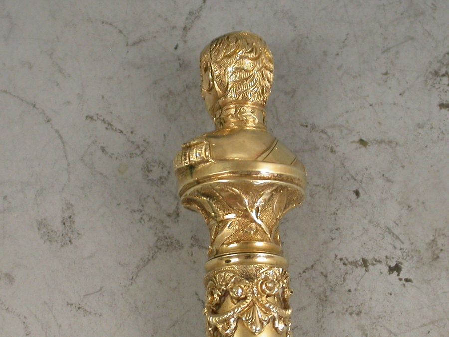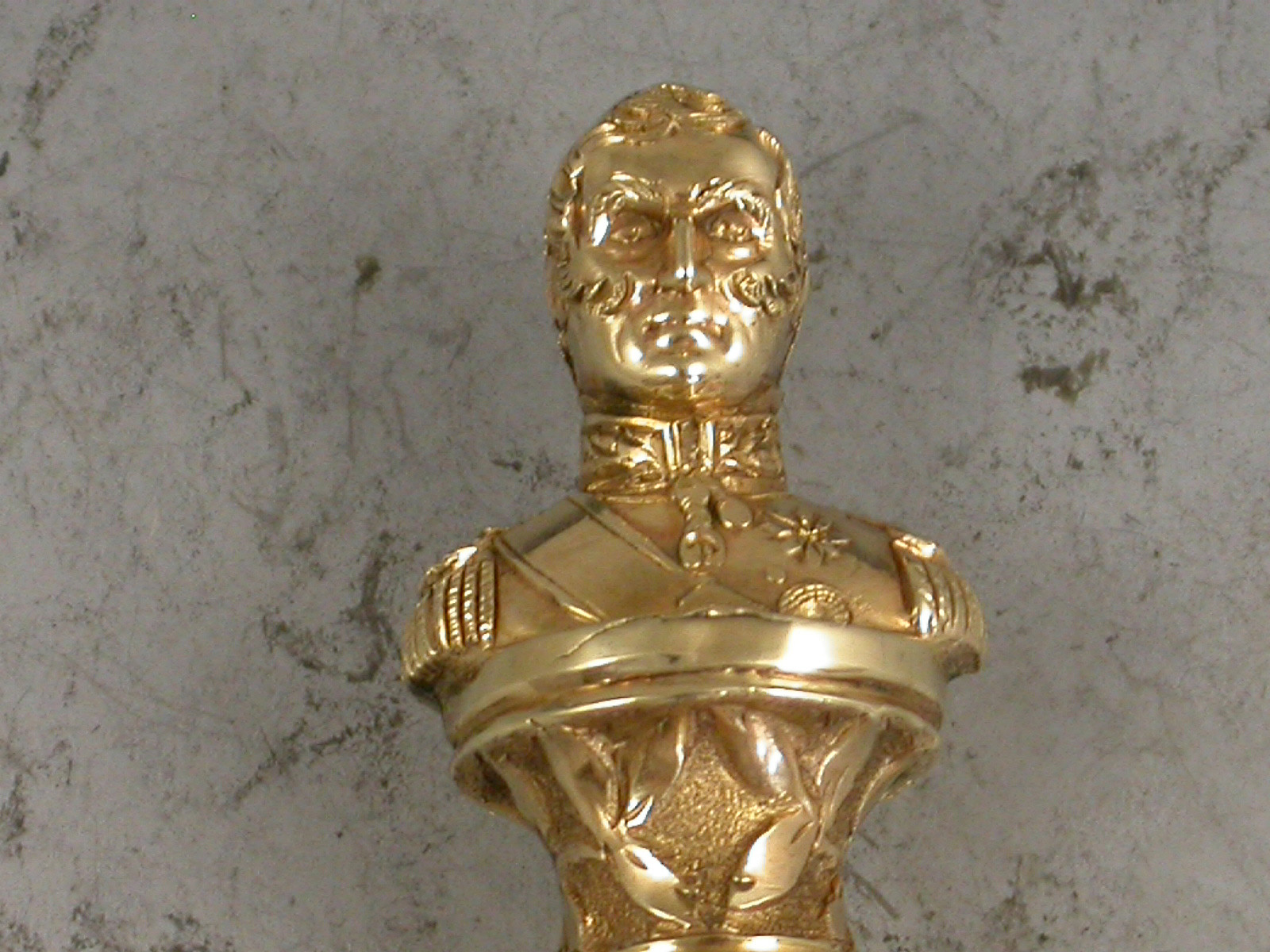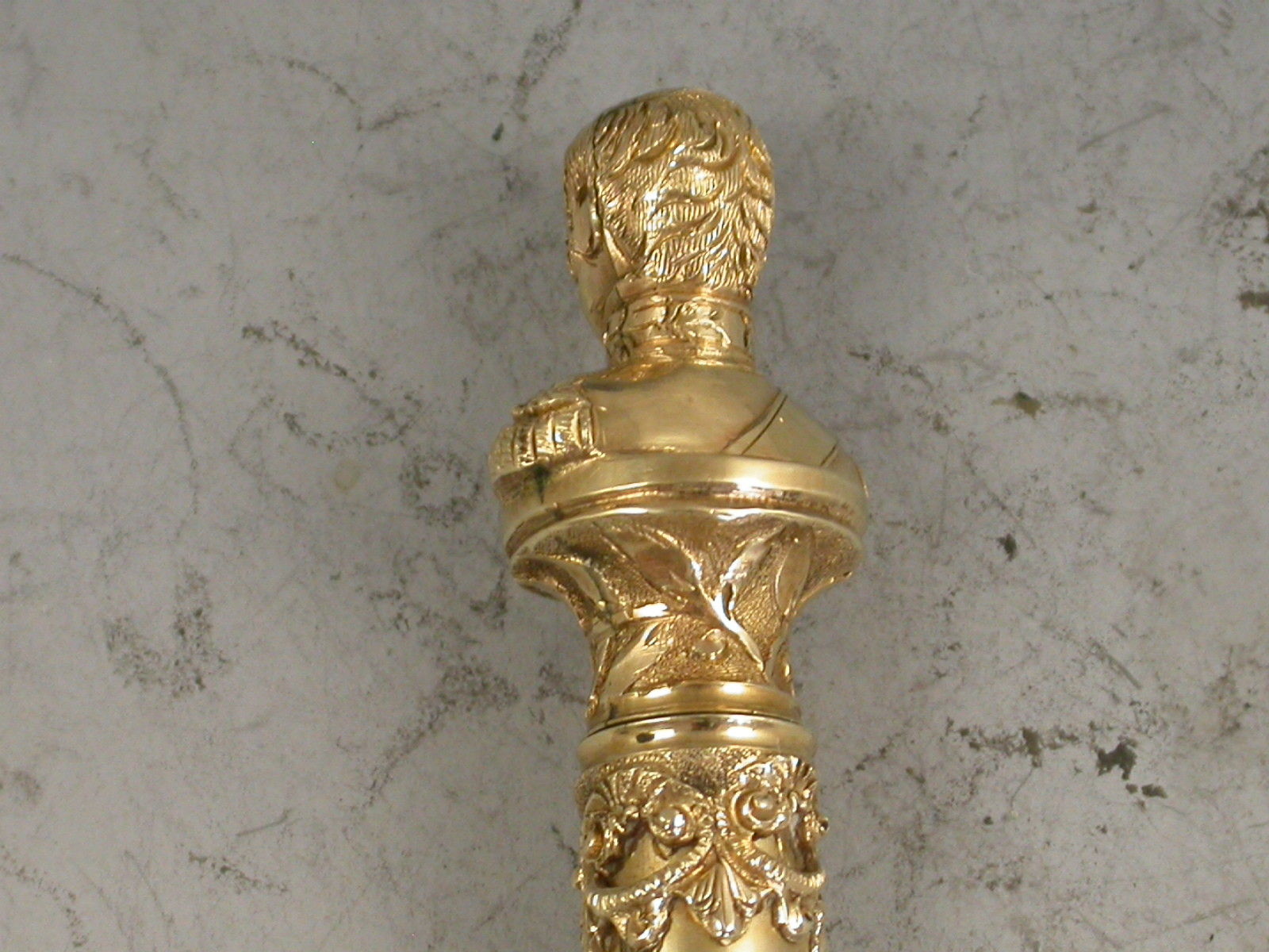 In fine crisp condition with just a tiny fracture to the gold case around the base of the bust and to one side of his head. In full working order.