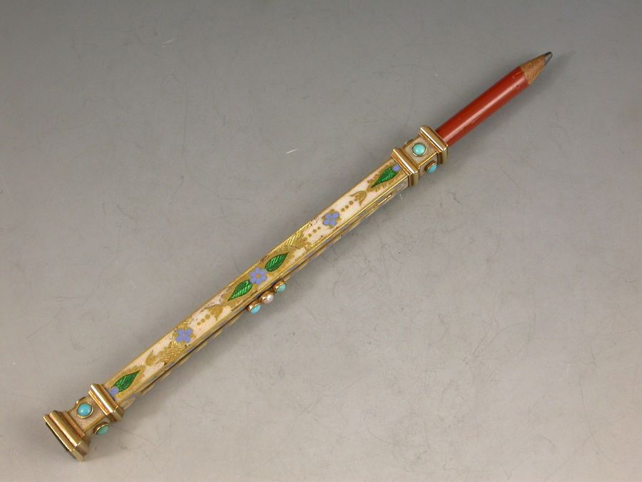 Victorian Gold, Enamel & Jewelled Sliding Pencil