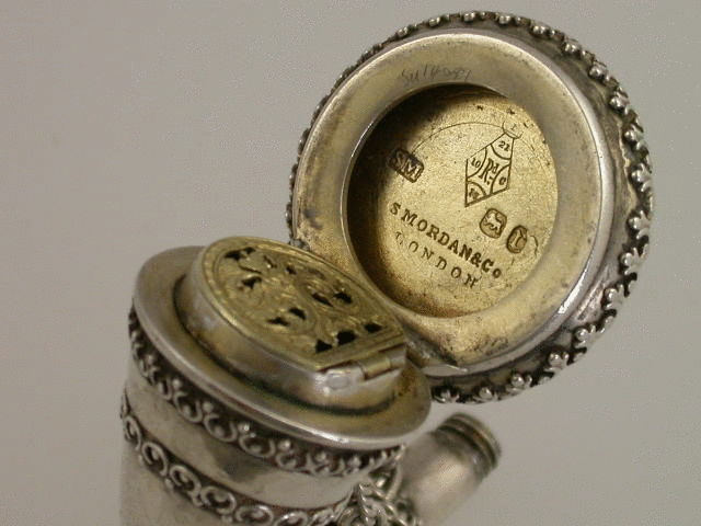 By Sampson Mordan & Co, London 1872. Diamond registration mark to interior lid.