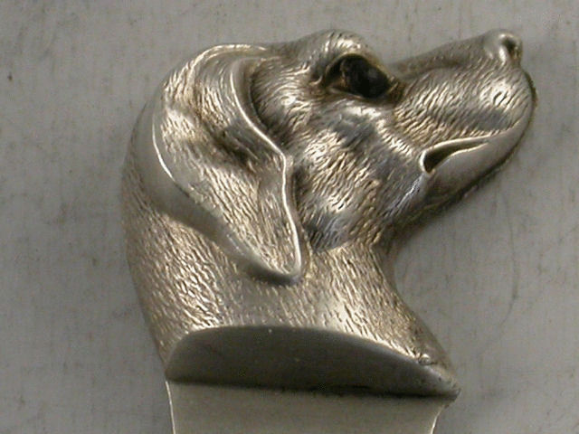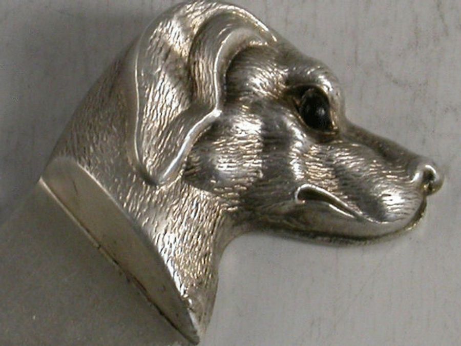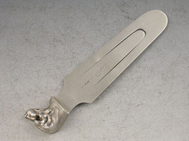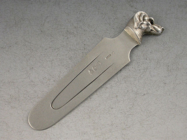 A rare Victorian silver Bookmark, the terminal formed as a finely modelled Hounds Head with ruby glass eye.